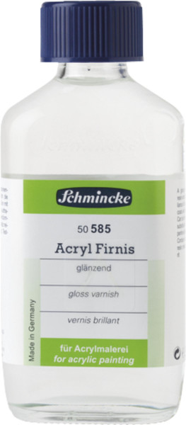 Schlussfirnisse für die Acrylmalerei. Farblos, nicht gilbend, alterungsbeständig uns schnell trocknend. Mit Terpentinersatz verdünnbar. Enthält Acrylharz und Testbenzin; zudem Mattierungsmittel in Firnis matt.