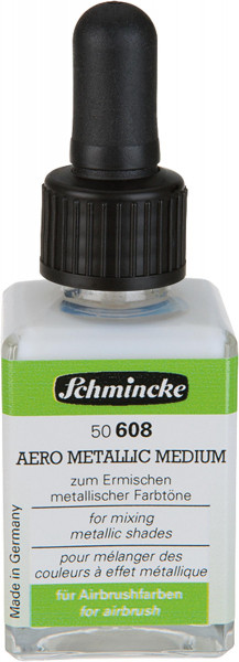 Das neue Aero Metallic Medium für Airbrush ist ein hochkonzentriertes Medium zum Ermischen metallisch schimmernder Airbrush-Farbtöne. Das Medium auf Acrylbasis wird der Airbrushfarbe beigemischt und erzeugt lichtechte, wasserfeste Oberfächen.