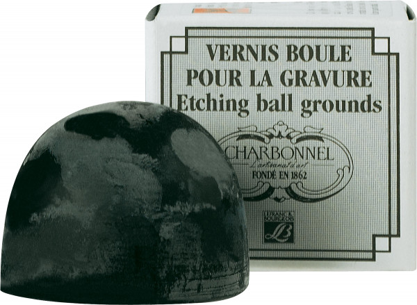 Schwarz, sehr hart, deckend matt, Konsistenz: pastenförmig. Dieser Ätzgrund ist in ein Stück Taft eingewickelt, das als Filter dient. Es wird auf das zuvor erwärmte Metall gerieben. Gehen Sie tupfenweise vor, um die Oberfläche gleichmäßig zu bedecken und schmauchen Sie die Platte anschließend. Durch das schwarze, matte Aussehen sind die mit der Nadel bearbeiteten Flächen besonders gut sichtbar. Bestandteile: Judée-Bitumen, Wachs.