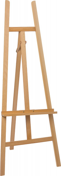 Aus massivem Buchenholz, mit Leinöl getränkt. Stabile, solide hergestellte, dreibeinige Staffelei. Verschiedene Schrägstellungen möglich, zusammenklappbar. Höhenverstellbar durch Klemmvorrichtung.