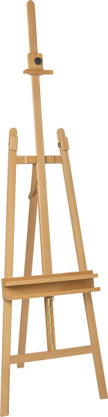 Aus massivem Buchenholz, mit Leinöl getränkt. Bei der solide gefertigten Dreibeinstaffelei sind verschiedene Schrägstellungen möglich, außerdem ist sie zusammengeklappt überall zu verstauen. Der durch ein Metallraster höhenverstellbare...