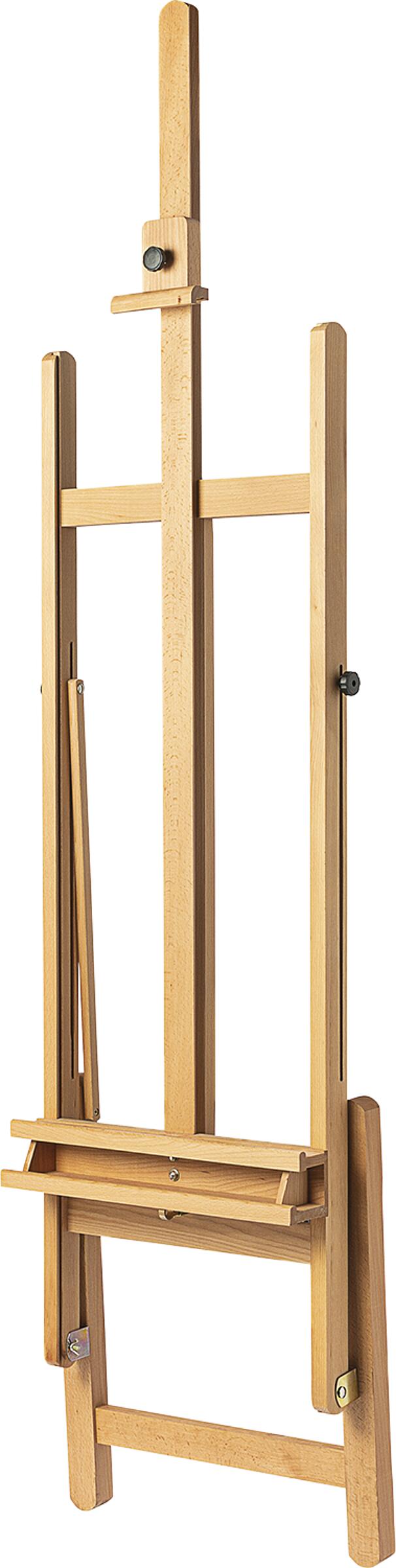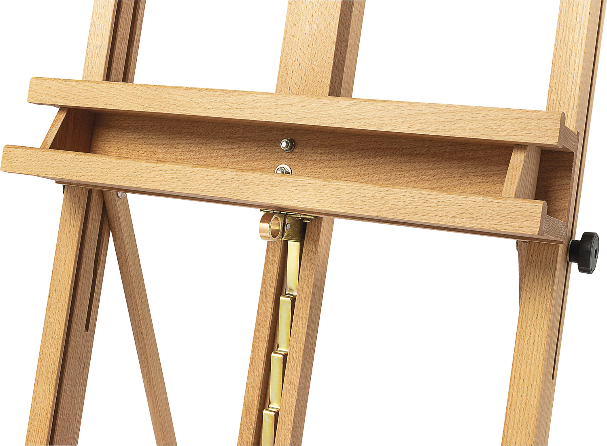 Klassische Staffelei aus massivem, mit Leinöl getränktem Buchenholz. Die zusammenklappbare Staffelei lässt sich schnell auf- und abbauen. Der Arbeitstisch mit Doppelablage für Pinsel und Farbtuben ist über ein Metallraster...