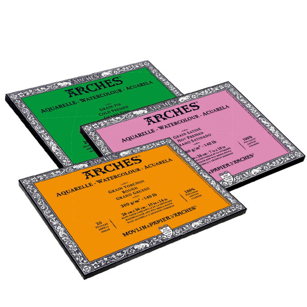 Französische Meister-Aquarellbütten, rundum geleimt, natürliche Weiße, 100 % Baumwolle, tierische Masseleimung, rundum geleimt, luftgetrocknet. Sehr formstabil nach dem Anfeuchten. Sehr hohe Farbechtheit und Alterungsbeständigkeit. Für Aquarell, Gouache, Acryl und Lavis. Ausführungen: Grain fin (Feinkorn), Grain torchon (Grobkorn) und Grain satiné (satiniert).