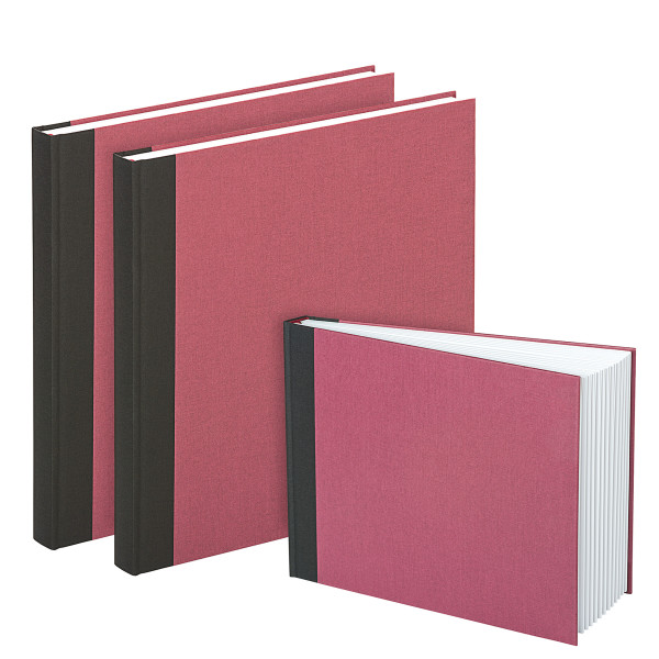 Die Aquarellbücher in den Ausführungen 25 x 25 cm und 26 x 18 cm (Querformat) verfügen über einen durchgängigen Einband, die anderen Formate sind mit Buchkanten aus Regent-Leinen eingefasst.