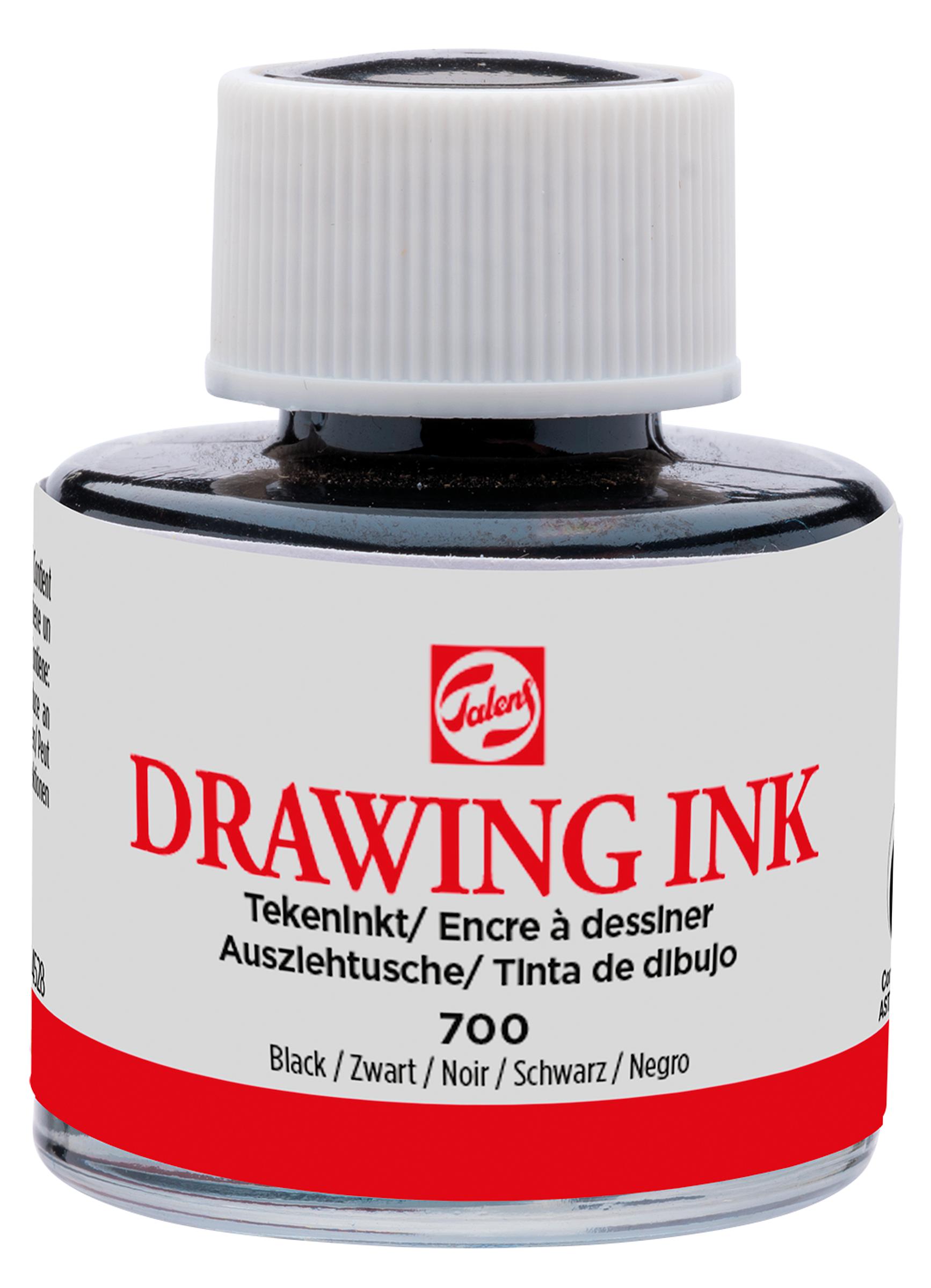 Die professionelle wasserfeste Tusche kann mit Zeichen-, Reißfeder und Pinsel verarbeitet werden.
