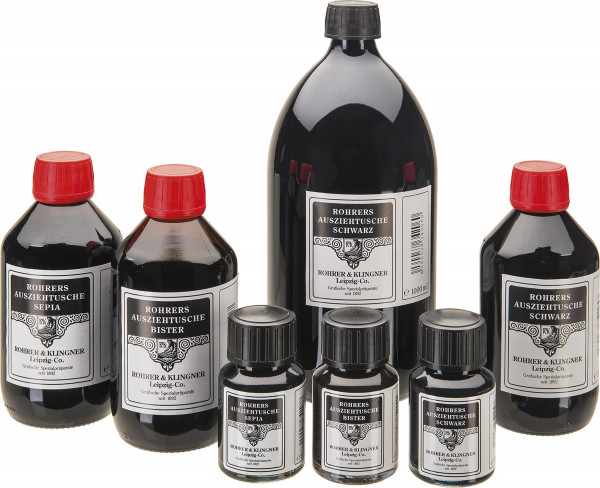 Die feinste Tusche ist universell in ihrem Anwendungsbereich und eignet sich nicht nur für feine kalligrafische Arbeiten und Federzeichnungen, sondern auch für Absprengtechnik und malerische Pinselzeichnungen. Unverdünnt ist die Tusche deckend, verdünnt mit destilliertem Wasser ist sie bestens geeignet für Flächentönung und Lavierung mit dem Pinsel. Es lassen sich wirkungsvolle Hell-Dunkel-Effekte erzielen.