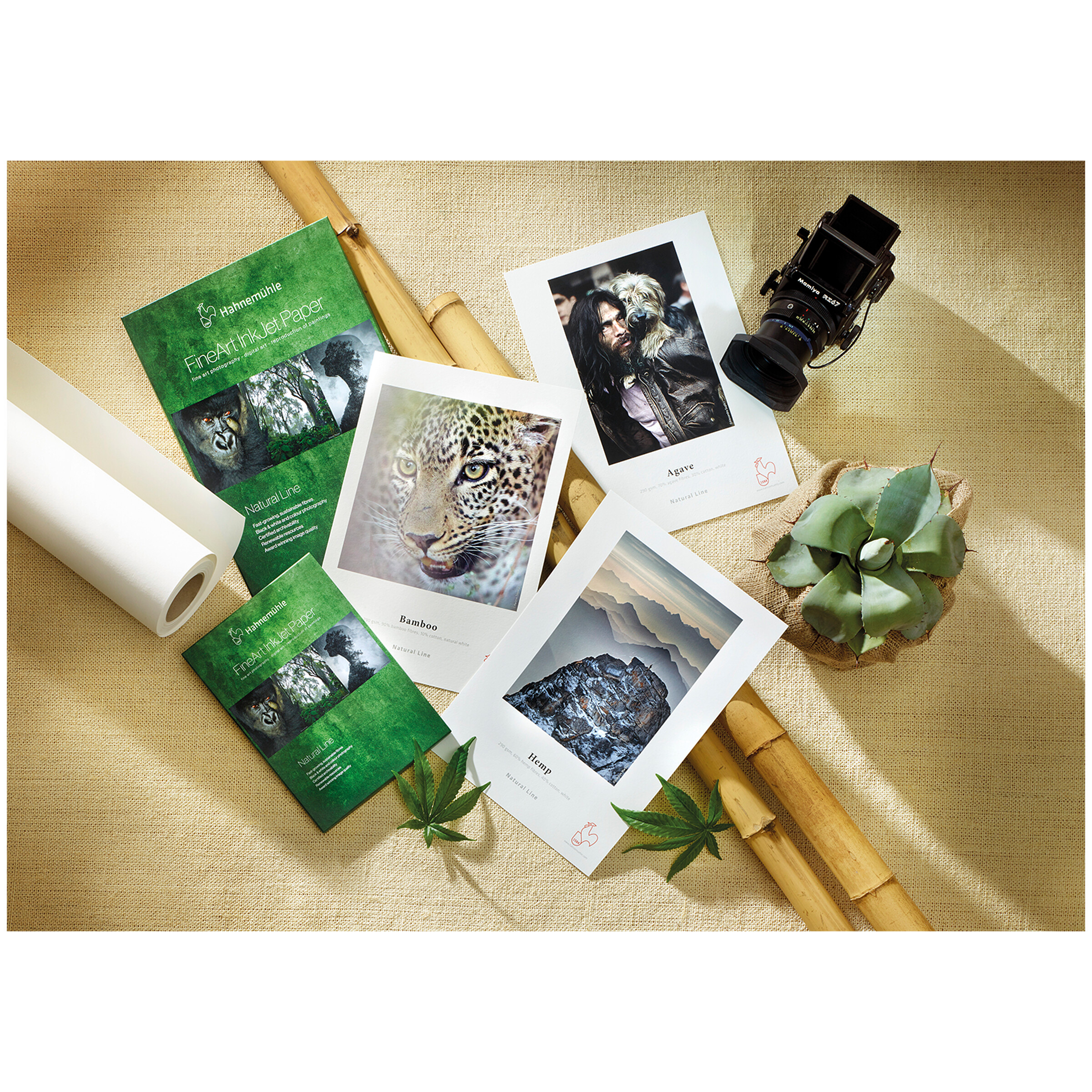 Das weltweit erste FineArt-Inkjetpapier aus Bambusfasern steht für Natürlichkeit und eine ressourcenschonende Papierproduktion. Es ist frei von optischen Aufhellern und besticht mit seiner weichen, leicht texturierten Filzstruktur und sinnlichen Haptik. Die matte Premium-Inkjet-Beschichtung des naturweißen, warmtonigen Bambuspapiers liefert exzellente Druckergebnisse mit feiner Farb- und Detailwiedergabe und bringt vor allem warmtonige Farb- und Monochromdrucke perfekt zur Geltung. Bamboo ist säure- und ligninfrei und erfüllt höchste Anforderungen an die Alterungsbeständigkeit. Die Kombination aus nachhaltigen Bambusfasern, sanfter Oberflächentextur und überzeugender Druckqualität verleiht Werken eine besondere Wirkung. Kompatibel mit Pigment- und Dye-Inkjet-Systemen. Aus 90 % Bambusfasern und 10 % Baumwolle, Naturweiß, matt.
