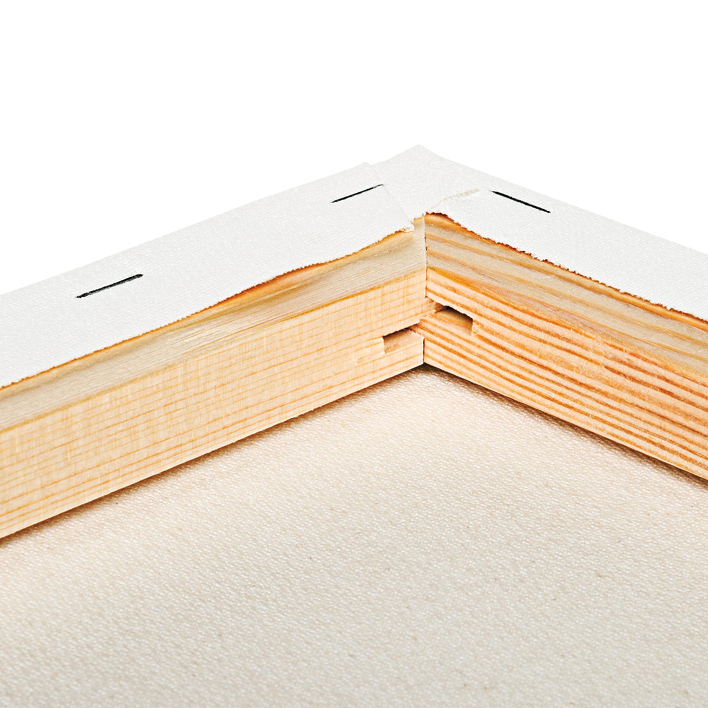 Der Keilrahmen Faustus besteht aus keilgezinktem, nachhaltig angebautem Fichtenholz (19 x 35 mm). Bespannt ist er mit gleichmäßigem Mischgewebe (70% Polyester und 30% Baumwolle) mittlerer Struktur (285 g/m²). Das universalgrundierte...