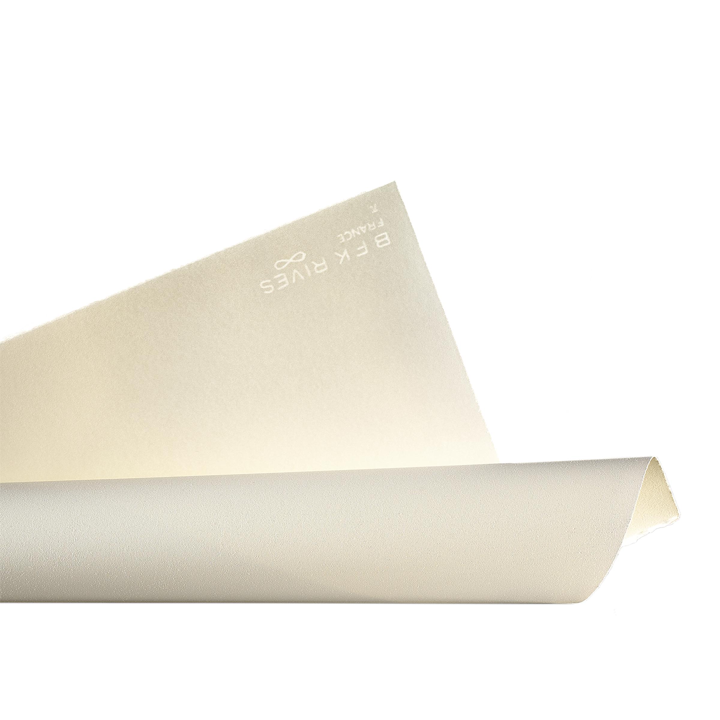 Aus 100 % Baumwolle, auf Rundsieb hergestellt. 4-seitiger Büttenrand, Wasserzeichen „BFK Rives France“ links unten. Weiß, säurefrei, gefertigt mit alkalischer Reserve. Geeignet für alle Stichtechniken: Kupferdruck, Lithografie, Holzschnitt, Siebdruck und Linolschnitt. ISO 9701 konform für optimale Alterungsbeständigkeit.