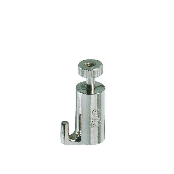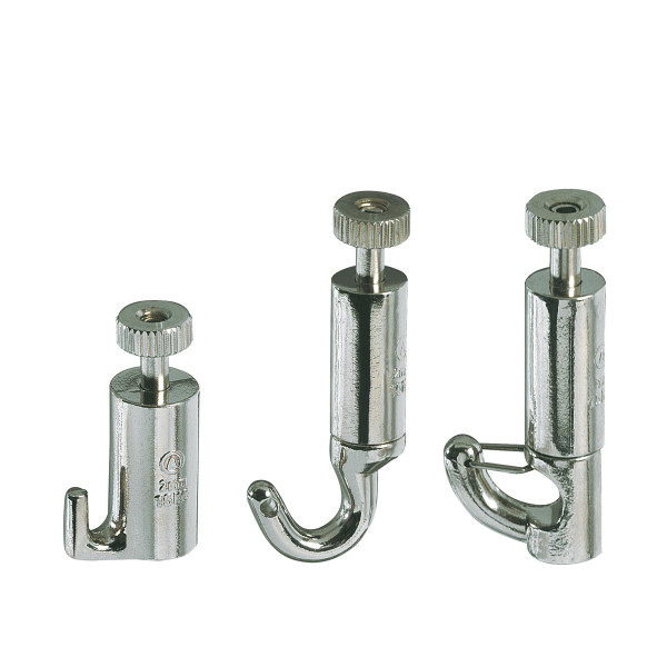 Schraub- und stufenlos verstellbar, für Perlonseile mit Ø 2 mm geeignet. Durch Herunterdrücken des oberen Rings können die Haken in der Höhe verstellt werden. Das Perlonseil klemmt sich im Inneren durch eine Feder fest. Tragkraft bis ca. 15 kg.