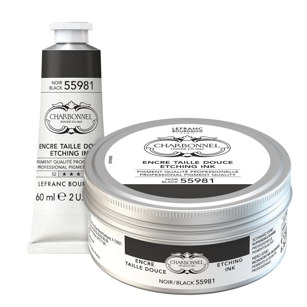Geschmeidiges Universalschwarz, kompakte Konsistenz, leicht zu wischen. In Kombination mit dem strengeren 55985 ideal für Aquatinta.