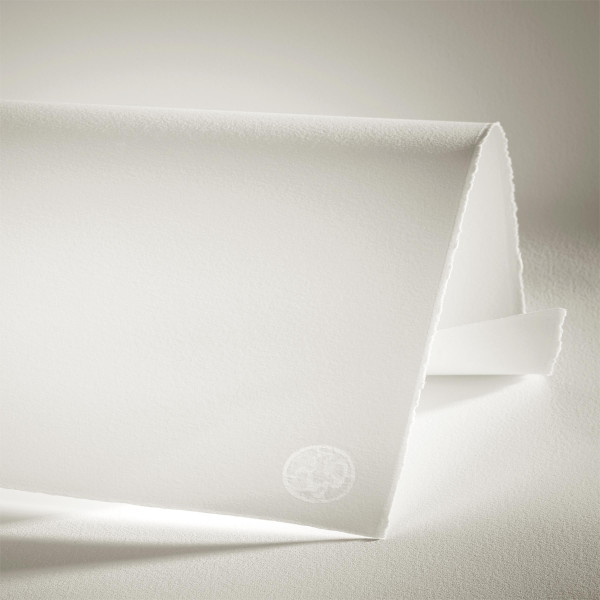 Echter Büttenkarton, mit 3-seitigem Büttenrand. Säurefrei, alterungsbeständig und lichtunempfindlich.