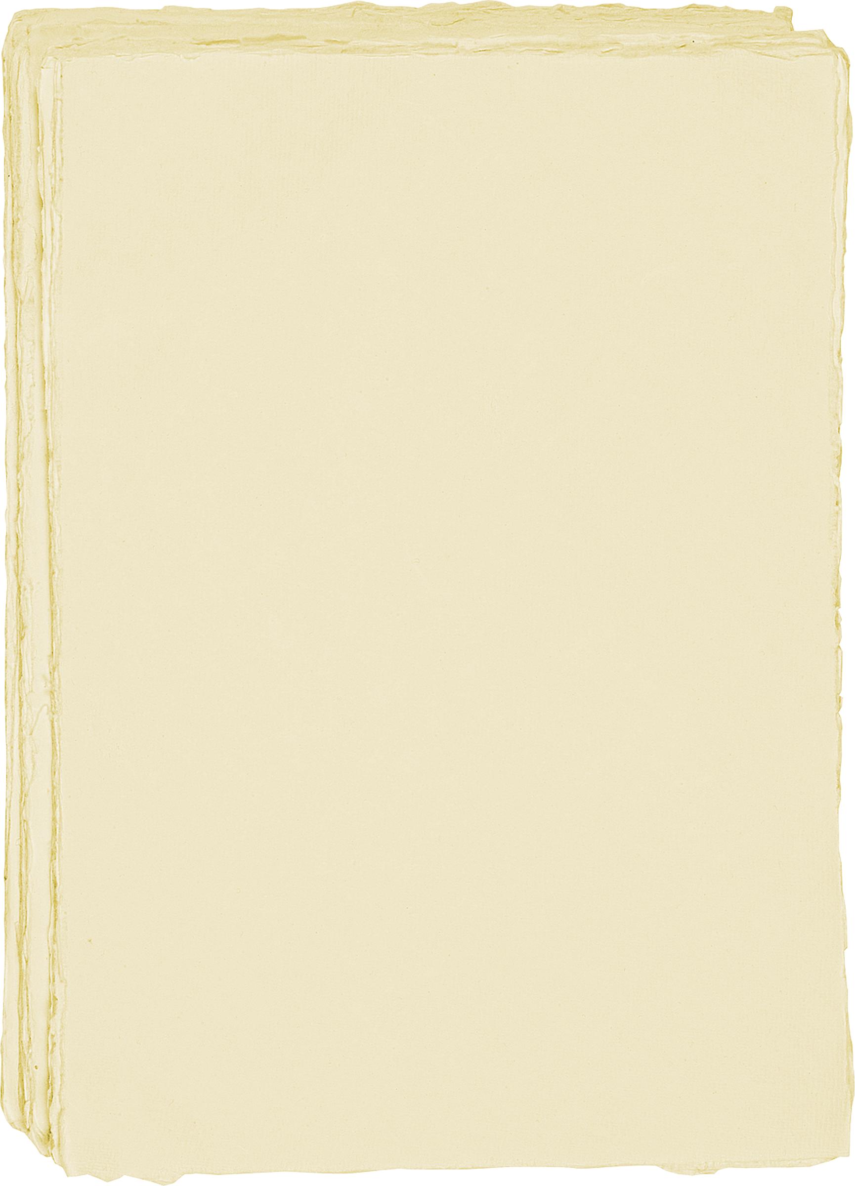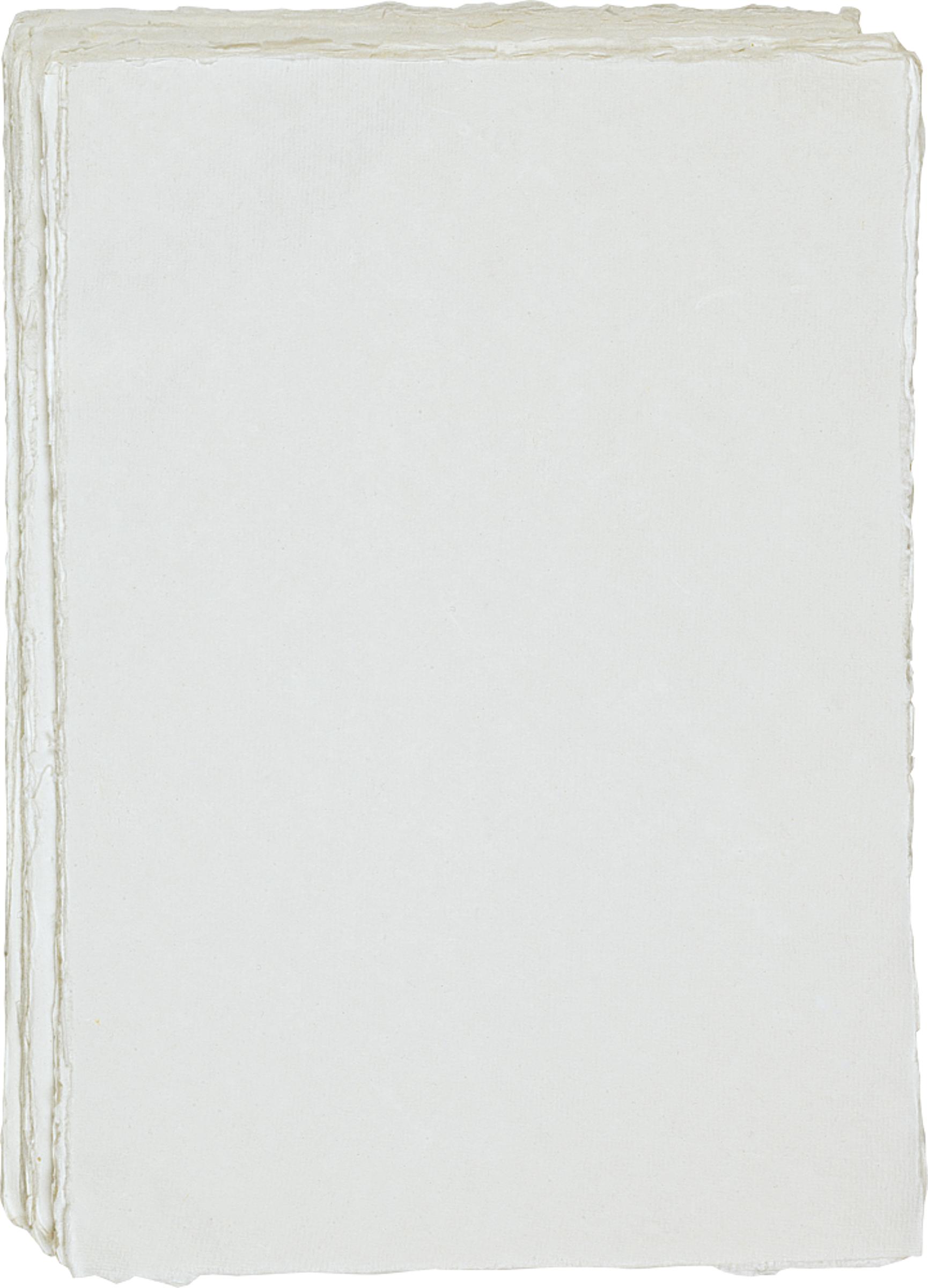 Aus 100 % Baumwolle, matte Oberfläche, pH-Wert 6–6,5. Mit 4-seitigem Büttenrand, von Hand aus der Bütte geschöpft. Die Bogen werden nass getrennt (gerissen). Hergestellt nach 2.000 Jahre alter Tradition. Geeignet für alle Drucktechniken sowie für Tintenstrahldrucker, aber auch als Briefpapier. Format DIN A5, DIN A4 und DIN A3 in Paketen à 100/50/25 Bogen zu einem sensationellen Preis. Bei Naturpapieren sind leichte Farbabweichungen möglich.