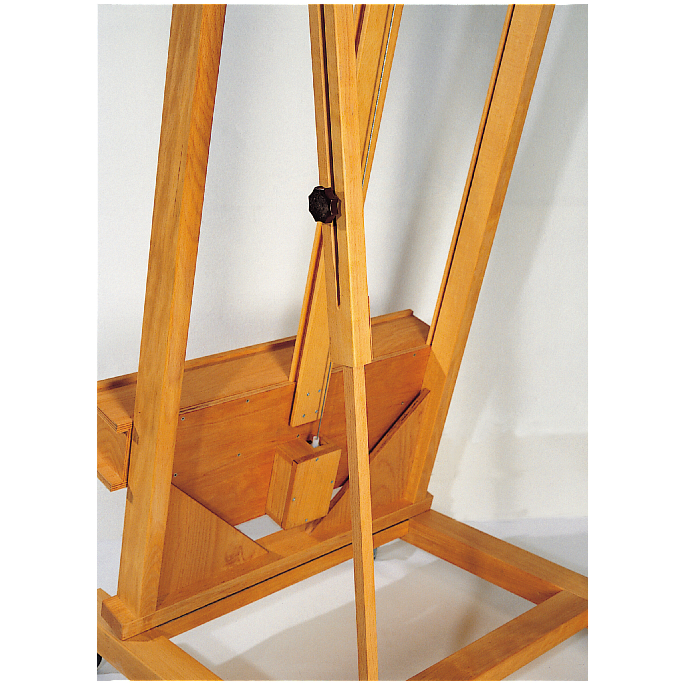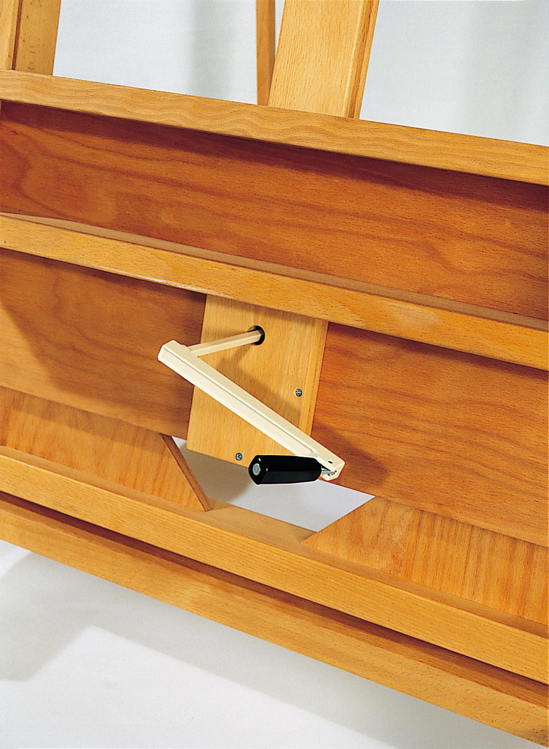 Absolute Profi-Staffelei bester handwerklicher Arbeit, aus Buche natur, mit Leinöl eingelassen. Höhenverstellung (ca. 85 cm) mittels einer Handkurbel und eines Leichtlaufgetriebes mit einer Tragkraft von 80 kg. Tisch mit großem...