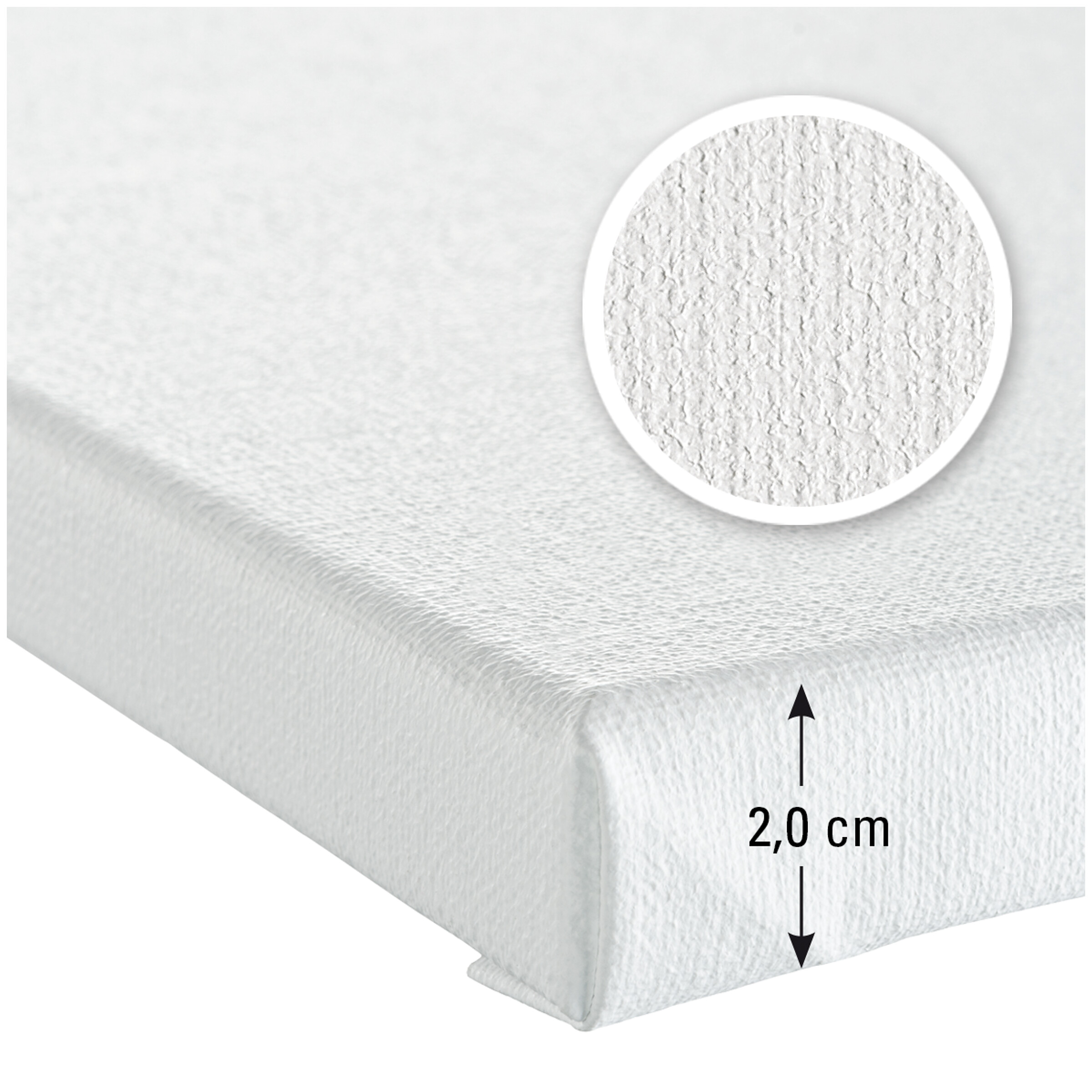 Das verwendete klassische Leinengewebe wird, wie in der traditionellen Malerei, mit Knochenleim zweimal von Hand vorgeleimt und dann ebenfalls von Hand in drei Schichten mit leicht saugendem Gesso grundiert. Das Gewebe eignet sich durch...