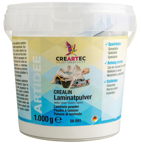 Das weiße Crealin-Pulver wird mit Wasser zu einer cremigen Laminatmasse gemischt, welche z. B. auf die Oberflächen von Objekten und Skulpturen aus Gipsbinden, Pappmasché, gefestigten Textilien und anderen Materialien aufgetragen werden kann. Es können zusätzliche Strukturen erzeugt und auch Gegenstände in die feuchte Masse eingebettet werden. Crealin verfestigt dabei die Objekte. Das Material ist so formstabil, dass damit auch scharfkantige Strukturen erzeugt werden können. Die Laminatmasse härtet innerhalb von 65–75 Minuten vollkommen stabil ohne jegliche Schrumpfung aus. Aus Crealin hergestellte Oberflächen sind abrieb- und wetterfest und können mit allen Farben, Lacken und Klebstoffen weiter bearbeitet werden. Die Laminatmasse haftet auf Pappe, Holz, Metall, Stein, Gipskarton Styropor und vielen anderen Materialien.