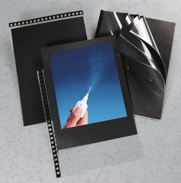 Passend für das Run 101-Ringbuch. Sie ist extrem archivsicher, sodass auch nach langer Lagerung keine Farbveränderungen an den Dokumenten eintreten. Cristal Laser®-Hüllen aus nicht haftendem Polypropylen sind hochtransparent, dokumentenecht, archivsicher und haben erfolgreich den Photographic Activity Test (PAT) des Rochester Institute of Technology, USA bestanden. Säure- und weichmacherfrei. Dokumente kleben nicht an der Hülle fest. Auch Vorlagen, die mit den heutigen Technologien (Farbkopien, Plottern, etc.) erstellt werden, können problemlos eingeschoben und archiviert werden. Die Lochleiste der Hülle ist mit schwarzem Karton verstärkt. Schwarze, säurefreie Papiereinlage. Made in France.