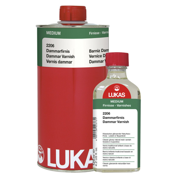 Mit mittlerem Glanz auftrocknender Naturharz-Firnis für Öl- und Temperabilder. Kann mit Terpentinöl oder Citrusterpentin verdünnt werden. Eingestellt für Pinselauftrag. Für Spritzpistolen dem Druck und der Düsengröße entsprechend verdünnen. Hinweis: Dammar-Firnisse verlieren mit der Zeit etwas an Elastizität. Enthält extra-hellen Batavia-Dammar, rektifiziertes Terpentinöl.