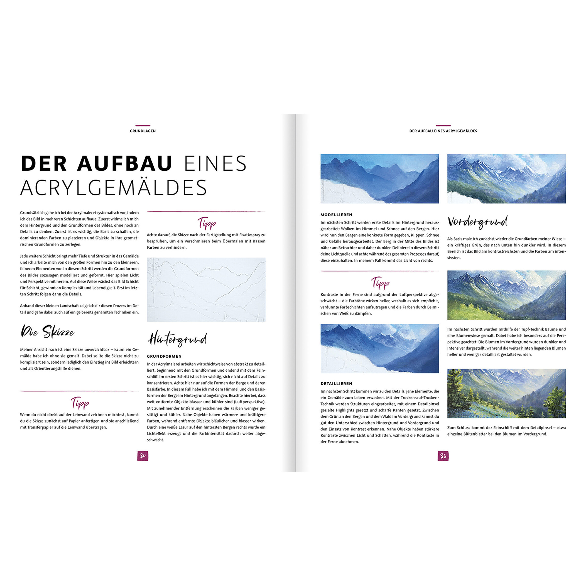 Die ausdrucksstarken Acrylgemälde von Raffaela Lerch – vielen besser bekannt als ""aronjaart"" bei Instagram (100.000 Follower) – ziehen den Betrachter automatisch in seinen Bann. Mit ihrem Buch können Anfänger und auch Fortgeschrittene die Landschaftsbilder, Tierporträts, Fantasy-Motive und weitere Genres von ihr nun endlich nachempfinden. Im praktischen Grundlagenteil vermittelt die Autorin ihr Wissen zu Farbtheorie, Perspektive, Schattierungen, Farbauftrag, Materialien und den grundlegenden Techniken der Acrylmalerei. Mit diesen Basics ausgestattet kann es nun an die vielen Motive gehen. Schritt für Schritt werden unterschiedlichste Landschaften gezaubert. Eine blühende Alpenwiese, tropische Strände, Wasserfälle und Bergpanoramen stellen nur einen kleinen Teil dieser Vielfalt dar. Naturrealistische Tier-Motive ergänzen die Landschaften und der Ausflug in die Welt der Fantasy-Malerei regt die Fantasie in besonderer Weise an. Mit den hilfreichen Tipps und Videomaterial vom Profi werden sowohl Anfänger als auch Fortgeschrittene sicher zum Erfolg geführt. Ob zum Verschenken oder für das eigene Zuhause: Raffaela Lerchs Motive sind ein Hingucker und beeindrucken mit ihrer Tiefe. Tauchen Sie ein in die wundervolle Vielfalt der Acrylmalerei und genießen Sie die entspannenden Motive! Mit den Schrittanleitungen werden auch Sie die Kunst der Acrylmalerei erlernen oder ihre Fähigkeiten erweitern. Ran an den Pinsel!
