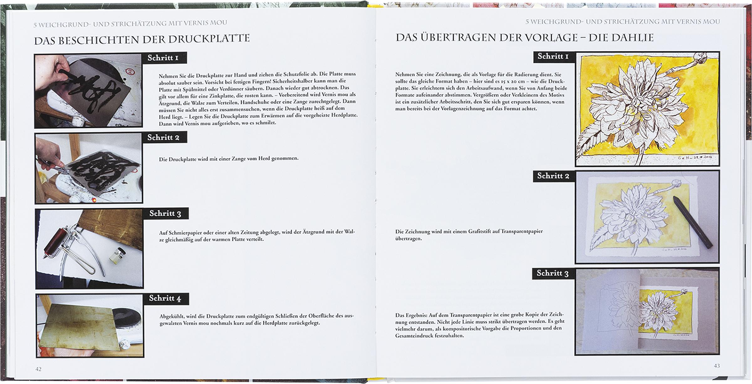 Susanne Haun öffnet mit diesem Buch die Türen zu ihrer farbenreichen Druckwerkstatt. Dabei gibt sie faszinierende und fundierte Einblicke in den Entstehungsprozess ihrer Radierungen. So lernt man direkt am Modell verschiedene Techniken kennen und wird praxisnah mit den Materialien vertraut, ob traditionell oder selbst hergestellt. Viele Fotos und Schrittbilder machen die Arbeitsabläufe sichtbar und leicht nachvollziehbar. Sie führen zu beeindruckenden Ergebnissen. Aus dem Inhalt: Was ist eine Radierung? • Die Werkstatt und was dazu gehört • Das Material und wie man es nutzt • Die Weichgrund- und Strichätzung mit Vernis Mou • Die Kaltnadeltechnik • Die Aquatinta-Technik • Die echte Farbradierung • Die Freude am Experimentieren Über die Autorin: Susanne Haun lebt und arbeitet in Berlin. Ihr Werk ist durch intensives Naturstudium und die Auseinandersetzung mit künstlerischen Vorbildern geprägt.