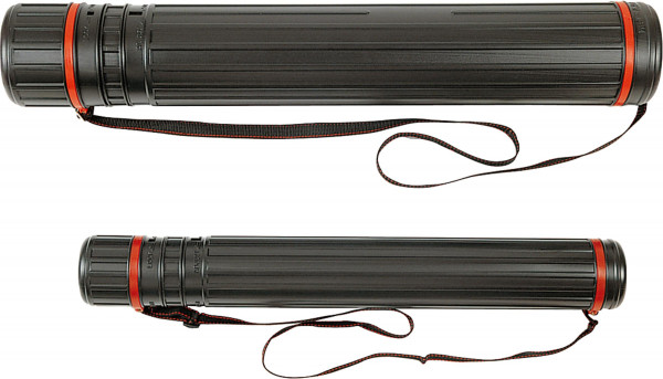Die durch Rasterverstellung in der Länge variabel einstellbare Rolle schützt wertvolle, großformatige Unterlagen beim Transport oder dient der sicheren Aufbewahrung. Aus robustem, recyclefähigem Hart-Polypropylen. Schwarz, mit Deckel und verstellbarem Tragegurt.