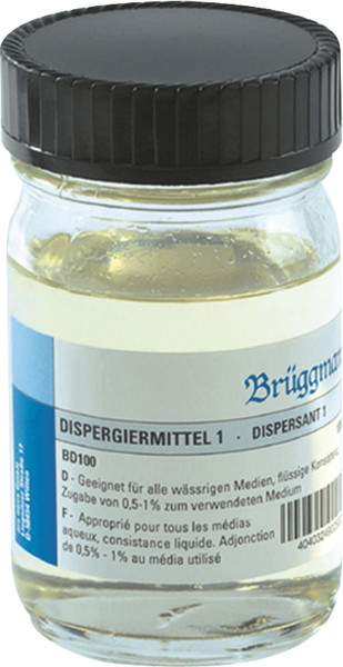 Zur Verbesserung der Pigmentverteilung im Anreibemedium. Geeignet für alle wässrigen Medien, flüssige Konsistenz. Das Ergebnis bei der Farbenherstellung ist eine deutlich glattere, homogenere Farbe, besonders unter Verwendung eines Quirls/Farbrührgerätes ist Dispergiermittel unerlässlich. Zugabe 0,5–1 % zu dem Medium, welches dem Pigment erstmalig zugegeben wird (bei der Herstellung von Acrylfarben Wasser oder Acrylbinder).