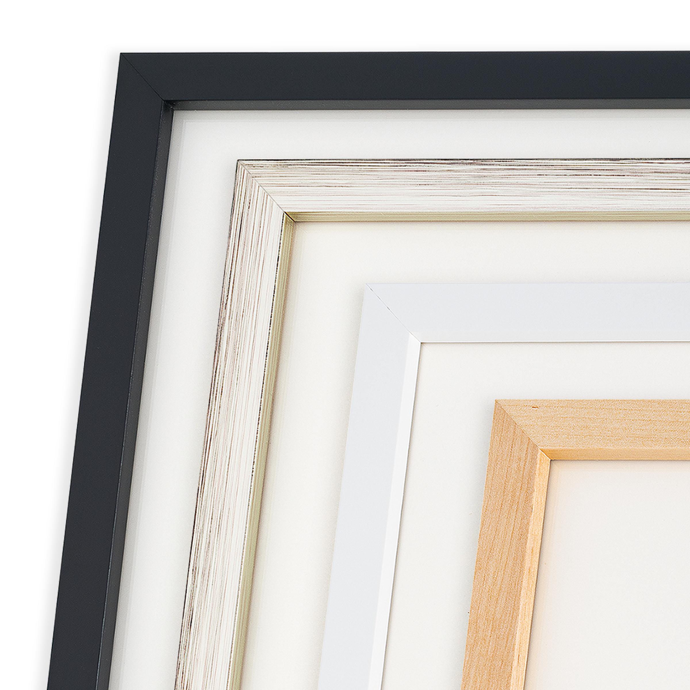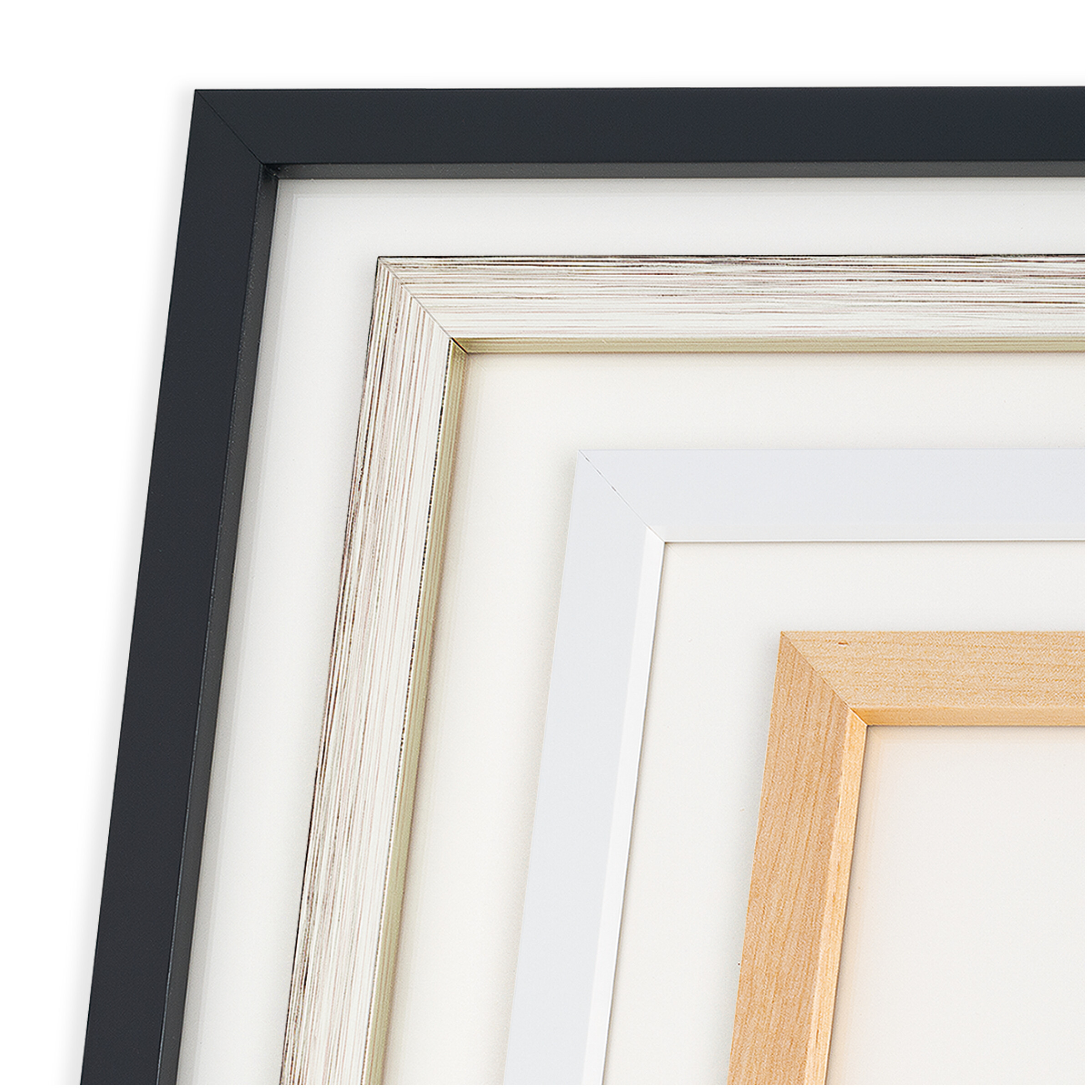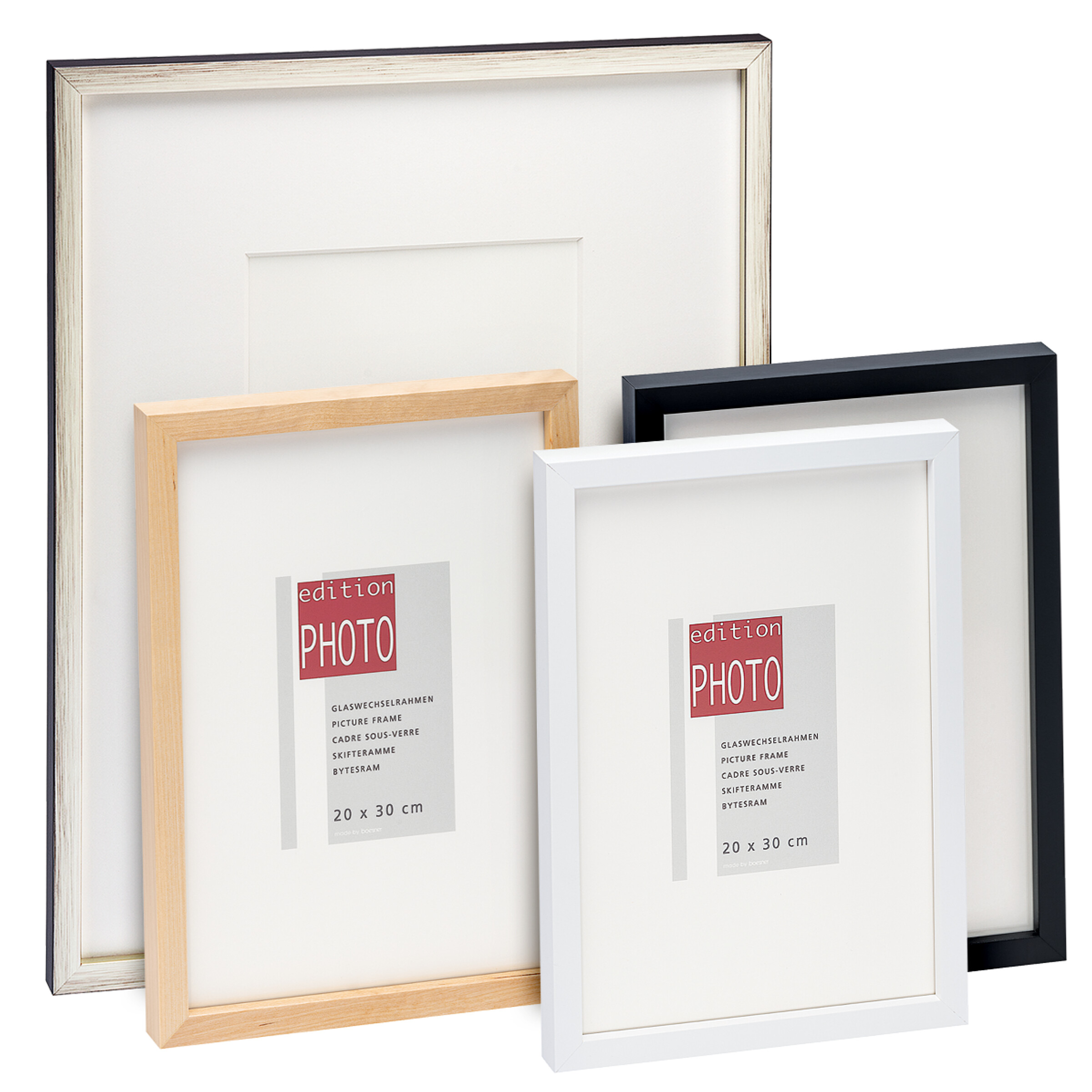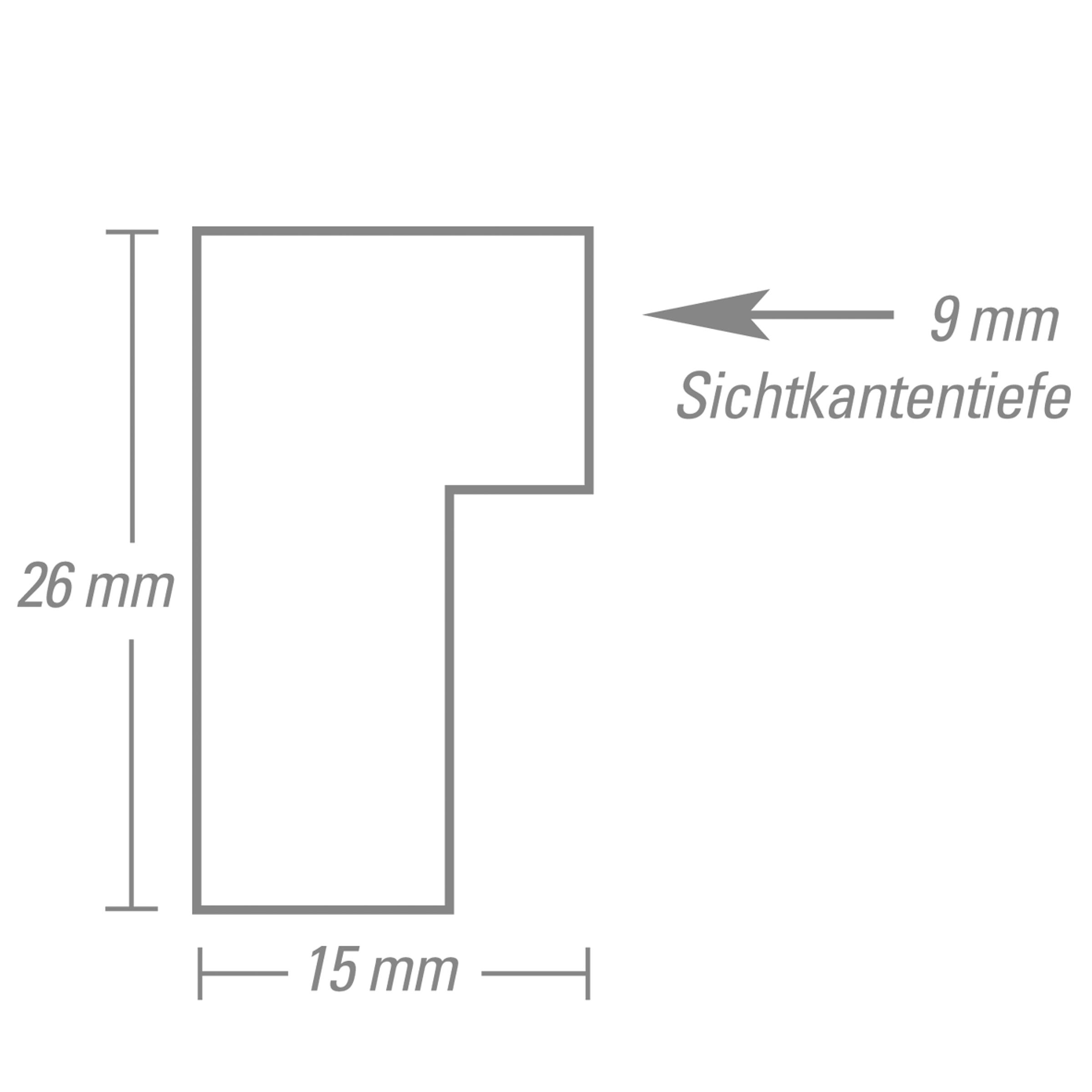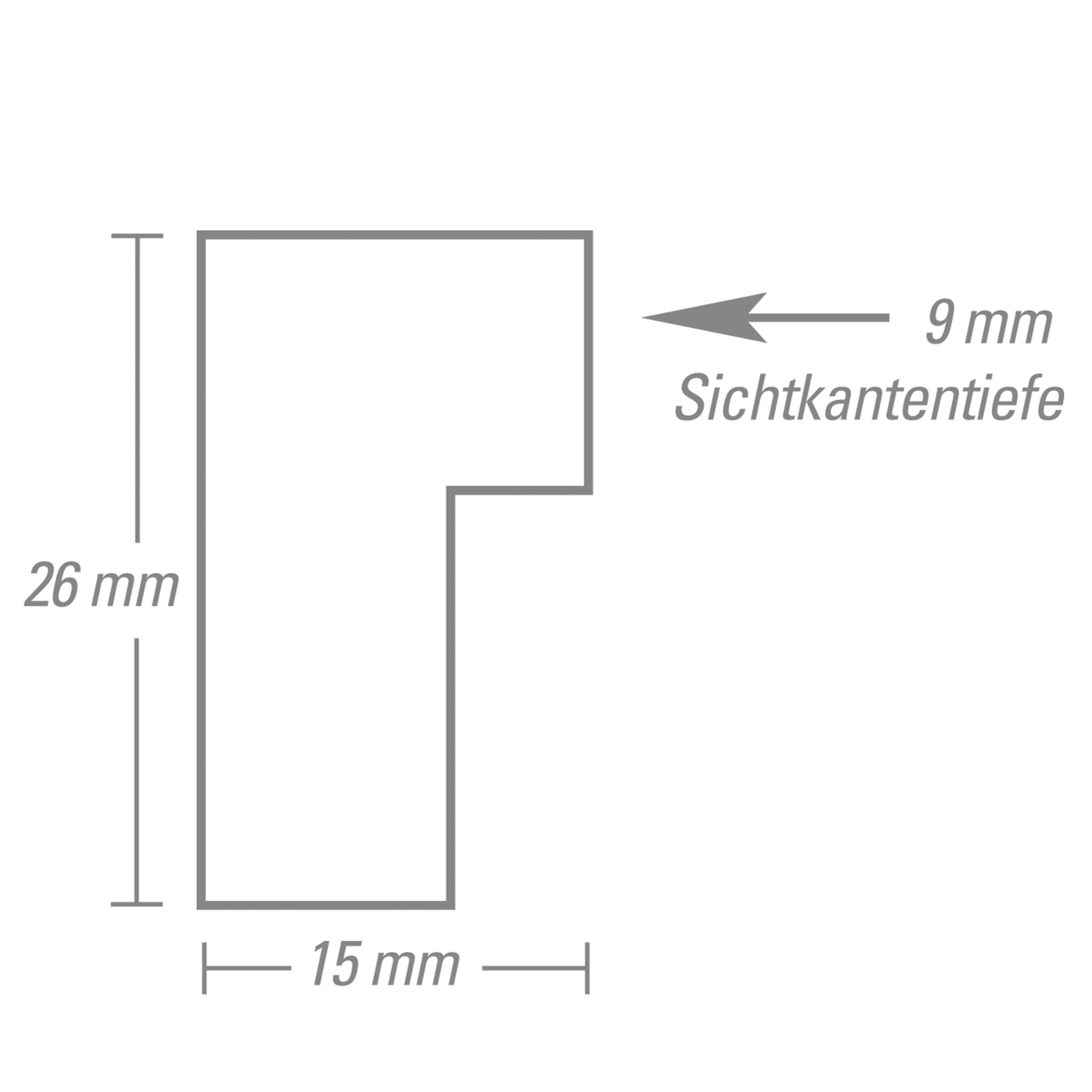 Die Sichtkantentiefe von 9 mm verleiht diesem Rahmen eine besondere Tiefe. Diese wird bei einigen Ausführungen noch zusätzlich von einem extra dicken 2,6 mm-Passepartout verstärkt. Zusätzlich enthalten alle Ausführungen einen...