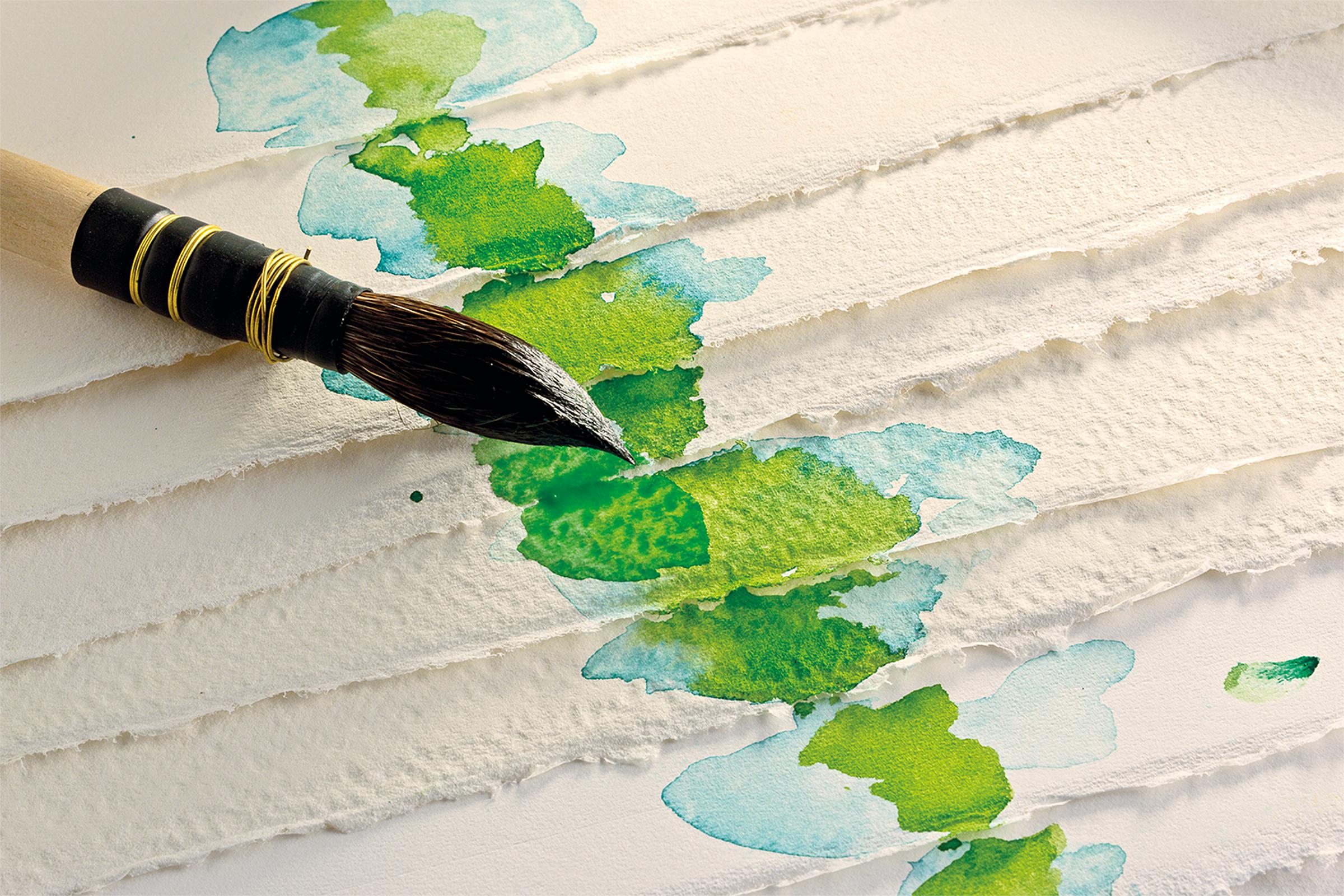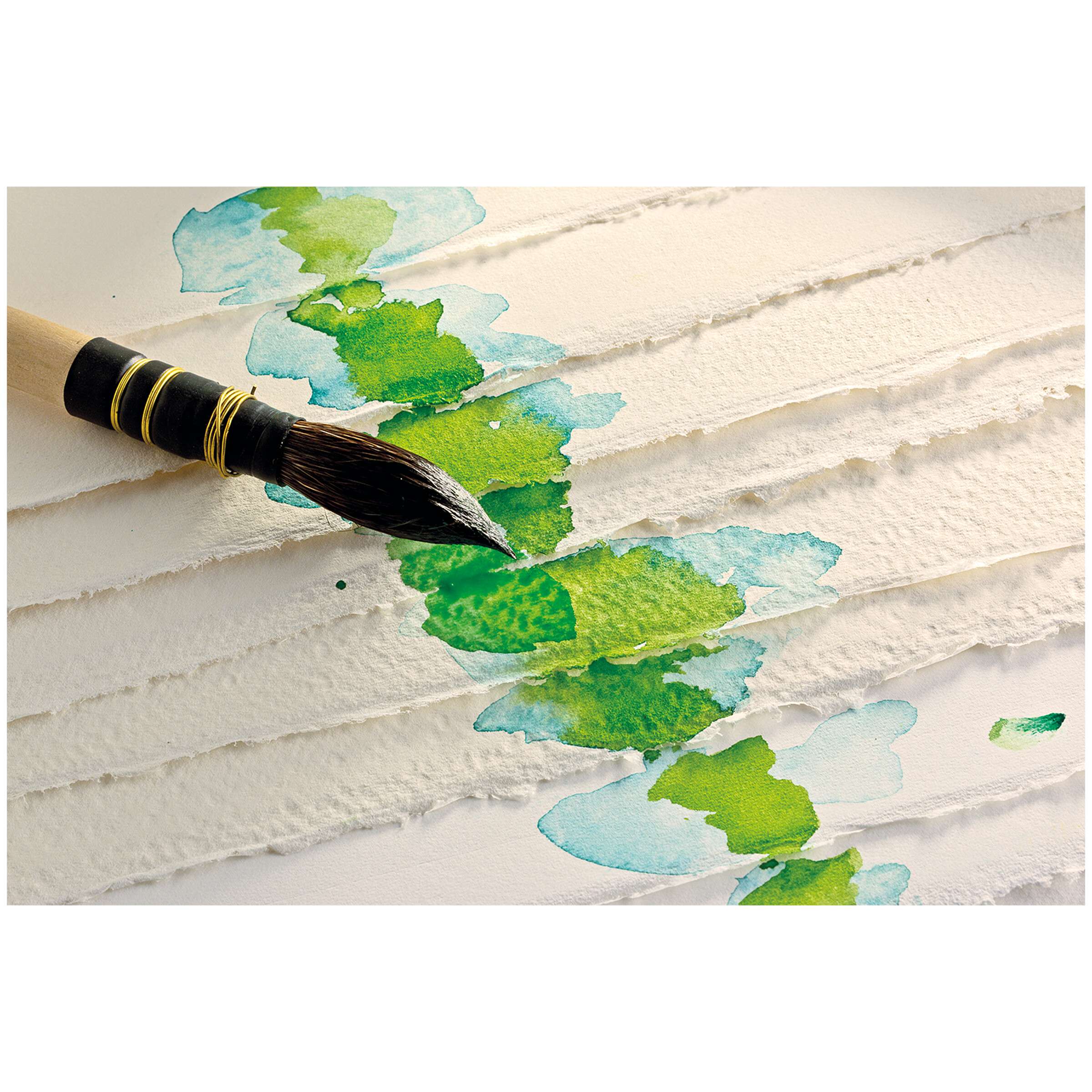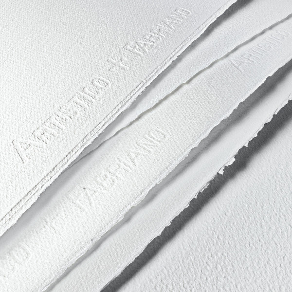Sehr hochwertiges hellweißes Papier aus 100 % Baumwolle, vierseitige Büttenränder, keine optischen Aufheller, alterungsbeständig, chlor- und säurefrei, pH-neutral, sehr saugfähig und vegan, stoff- und oberflächengeleimt. Die verbesserte Oberflächenleimung macht das Papier noch widerstandsfähriger. Es ist gut einsetzbar für das Abnehmen und Korrigieren von Farbe sowie für die Kratztechnik. Erhältlich mit 300 g/m² in 3 Oberflächen: Grobkörnig, feinkörnig und satiniert und mit 640 g/m² in 4 Oberflächen: Grobkörnig, feinkörnig, Soft Press und satiniert, wobei das Papier von grobkörnig zu satiniert immer weniger strukturiert ist. Ideal für Aquarellmalerei, Gouache, Acrylfarbe, Tusche, Kohlezeichnungen und Skizzen.