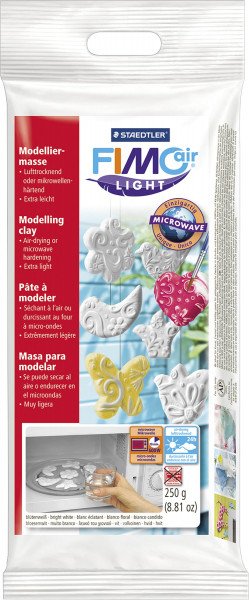 Das geringe Gewicht, die hohe Stabilität und die geringe Schrumpfung von Fimo Air Light bieten eine Vielzahl von Gestaltungsmöglichkeiten; auch für große Figuren und den Modellbau. Auch in der Mikrowelle härtbar. In Weiß erhältlich.