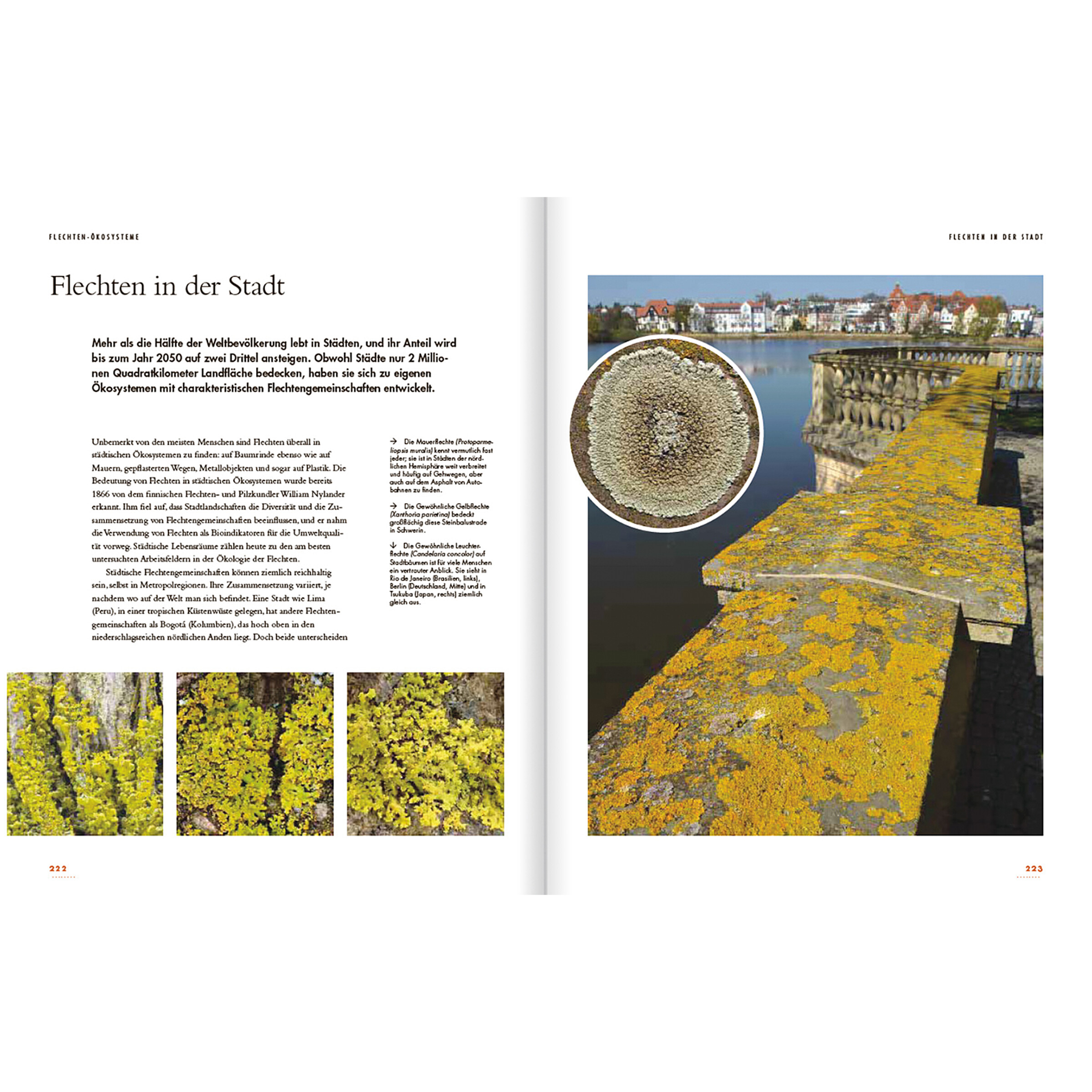 Flechten sind das Ergebnis symbiotischer Beziehungen zwischen Pilzen und fotosynthetisierenden Partnern in Form von Algen oder Cyanobakterien. Die mehr als 20 000 Arten umfassenden Flechten sind Pioniere in den verschiedensten Ökosystemen, besiedeln praktisch jede Oberfläche und wachsen in fast jeder Höhe. Sie sind in Regenwäldern, Polarregionen, Wüsten und in Ihrem Garten zu finden und verkörpern ein Paradoxon aus Zähigkeit und Empfindlichkeit. Sie überleben Reisen ins Weltall, sind aber auf der Erde schon durch die geringsten Umweltveränderungen aufgrund industrieller Verschmutzung gefährdet. Flechten wachsen überall, aber nur unter ihren eigenen Bedingungen: Niemand hat jemals eine Flechte im Labor vollständig aus ihren Bestandteilen nachgebaut. Die Autoren erforschen alle Facetten dieser besonderen Organismen und verbinden atemberaubende Makrofotografien und informative Grafiken mit detaillierten Beschreibungen der einzelnen Arten zu einer unvergesslichen Reise durch die wunderbare Welt der Flechten.