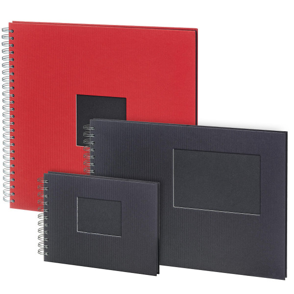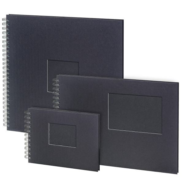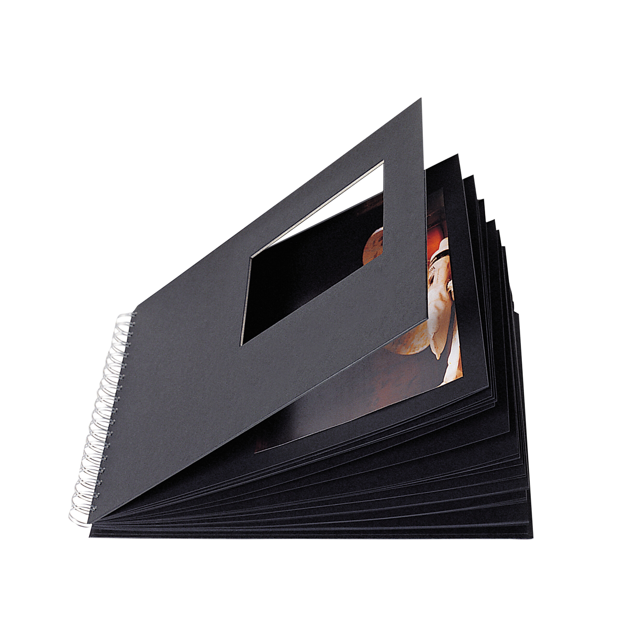 Album mit 60 Seiten tiefschwarzem, stabilem Fotokarton (250 g/m²) und Wire-O-Bindung. Einbandmaterial aus robustem Efalin mit hervorragenden Festigkeitswerten. Cover-Vorderseite mit ausgestanztem Fenster. Zur Aufbewahrung/Präsentation von Fotos, Zeichnungen u. v. m. Hergestellt in Deutschland.