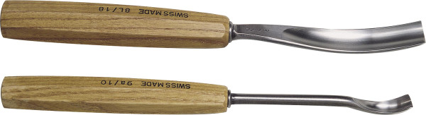 Schweizer Spitzenqualität aus legiertem Werkzeugstahl. Die Schnitzwerkzeuge sind innen gebrauchsfertig fein ausgeschliffen und poliert, daher leicht nachzuschleifen. Der mit pflanzlichen Ölen geölte achtkantige Eschenholzstiel mit Innenzwinge macht dieses Werkzeug zu einem unverwechselbaren Schweizer Spitzenprodukt. Profi-Werkzeug mit einer Klingenlänge von 120 mm und einer Gesamtlänge von 250 mm.