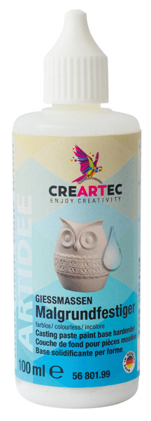 Der Gießmassen-Malgrundfestiger wird vor dem Bemalen mit Acryl-, Wasserfarben und anderen Lacken auf Objekte aus Gips und anderen saugenden Gießmassen aufgetragen. Er dringt in die poröse Oberfläche ein und verfestigt das Material. Trockenzeit ca. 15–20 Minuten. Auch für Natursteine und Keramik geeignet.