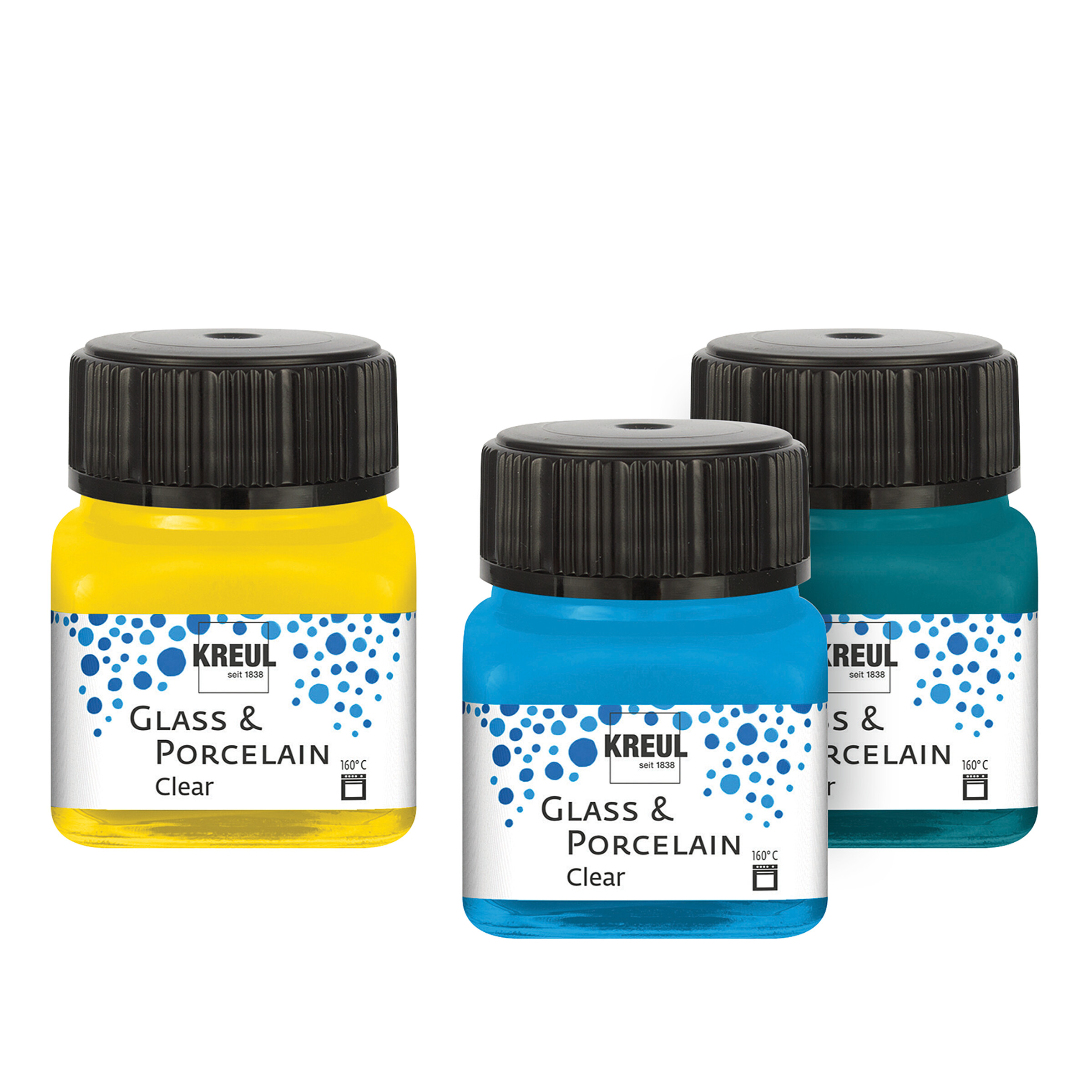 Glas- und Porzellanmalfarbe auf Wasserbasis zur dekorativen Gestaltung von hitzebeständigen Materialien wie Porzellan, Glas, Keramik, Terrakotta und Metall (haftfähig auch auf nicht-hitzebeständigem Material wie Acrylglas, Spiegel und vielen Kunststoffen). Die Bemalung ist nach dem Einbrennen wasserfest und spülmaschinengeeignet, allerdings nicht lebensmittelecht. Glass & Porcelain-Farben enthalten ein innovatives Bindemittel auf Basis von Pflanzenöl.