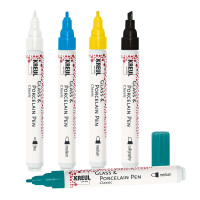Glas- und Porzellanmalstift auf Wasserbasis mit formstabiler Spitze zur dekorativen Gestaltung von hitzebeständigen Materialien wie Porzellan, Glas, Metall oder Keramik. Nach dem Einbrennen ist die Bemalung spülmaschinengeeignet.