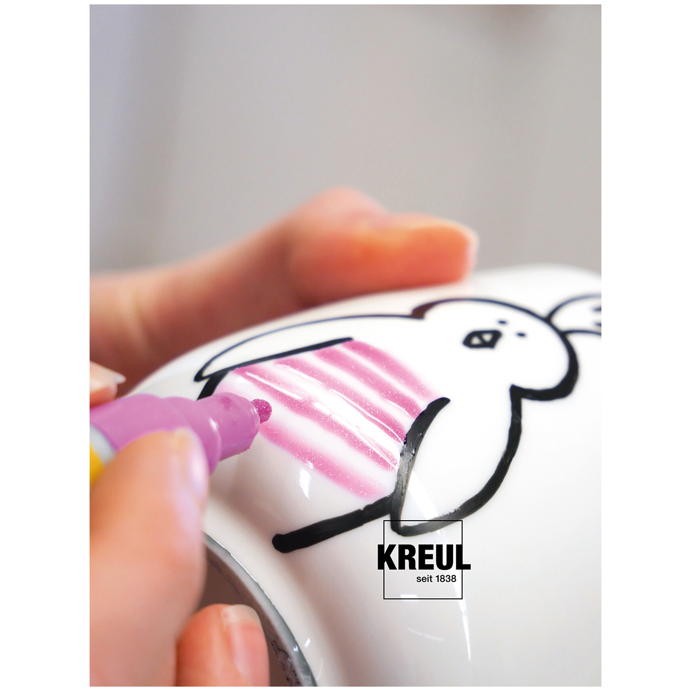 Glas- und Porzellanmalstift auf Wasserbasis mit formstabiler Spitze zur dekorativen Gestaltung von hitzebeständigen Materialien wie Porzellan, Glas, Metall oder Keramik. Nach dem Einbrennen ist die Bemalung spülmaschinengeeignet.