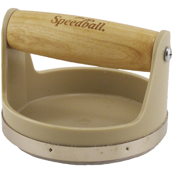 Für Handabzüge von Linol- und Holzschnitt, Materialdruck u. a. Die stabile Konstruktion aus starkwandigem Kunststoff-Spritzguss erlaubt auch einen sehr starken Andruck. Eine mit Nylongewebe überzogene Reibefläche gewährleistet beste Gleitfähigkeit, auch auf rauen und empfindlichen Papieren. Durchmesser: 114 mm.