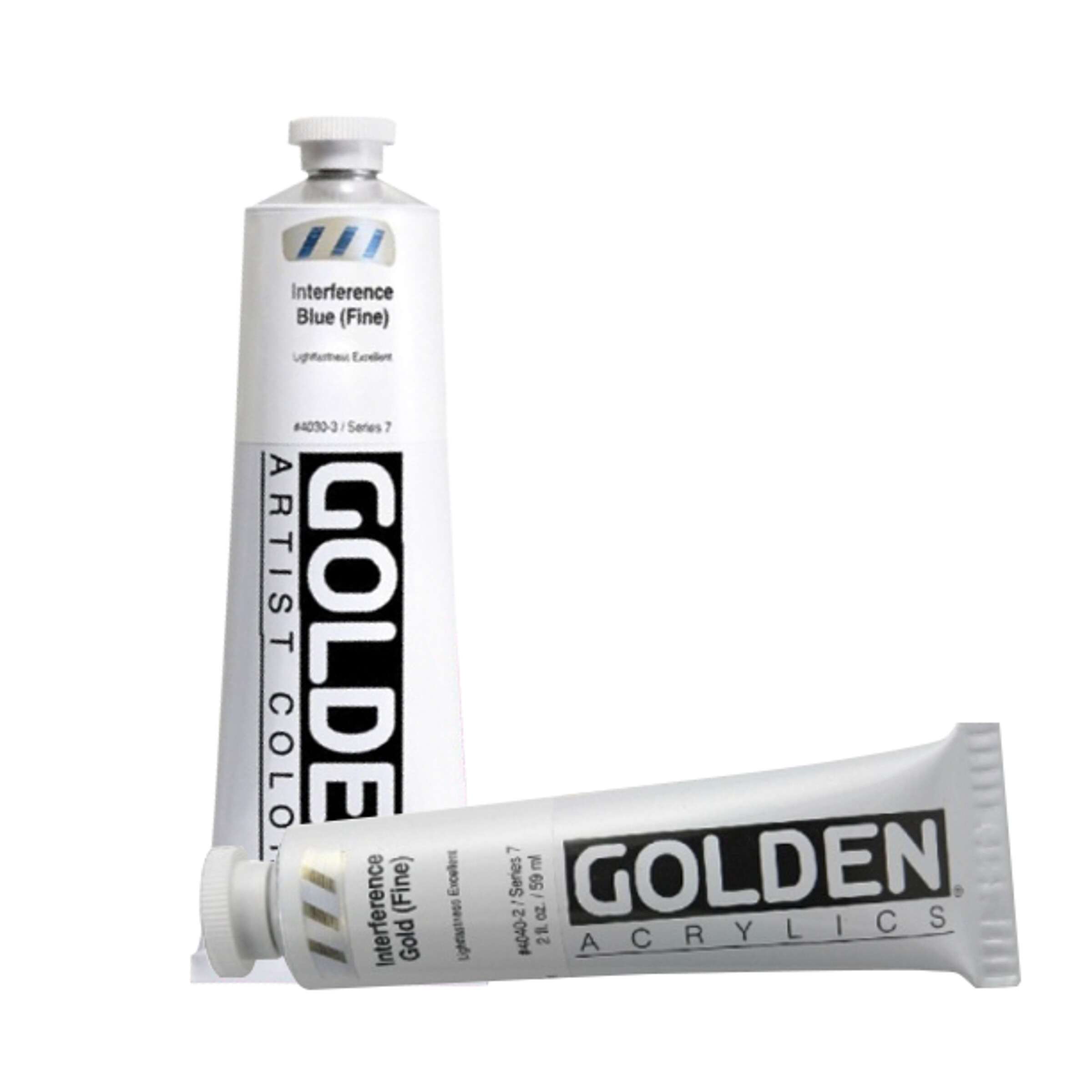 Die interferierende Farbe bietet ein spannendes Farbbild. Je nach Blickwinkel schillert sie zwischen ihrem opaleszenten und komplementären Farbton. Auf einer hellen Oberfläche ist der komplementäre, auf einer dunklen Oberfläche der opaleszente Farbton deutlicher. Durch das Hinzufügen einer sehr geringen Menge von Schwarz erzielt man einen stärkeren Effekt. Die Interferenzfarben sind relativ transparent und eignen sich verdünnt hervorragend für Lasuren. Die Farben verfügen über eine hervorragende Lichtechtheit und können mit Fluid Acrylfarben oder Golden Hilfsmitteln gemischt werden.