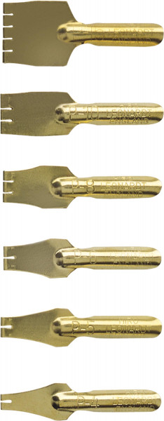 Plakatfedern aus Messing für Plakatarbeiten, Urkunden usw.. In 6 Breiten (4 / 5 / 6 / 8 / 10 / 15 mm) im praktischen 5er-Pack oder als Set mit allen verfügbaren Breiten erhältlich.