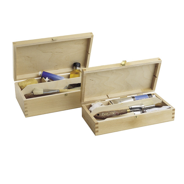 Zur Aufbewahrung verschiedener Künstlermaterialien. Stabil , Korpus aus massiver Buche, Deckel und Boden aus Sperrholz (Birke), sorgfältig gearbeitet, klar lackiert, Leimstellen fachmännisch verzapft, Scharniere und Verschluss aus...