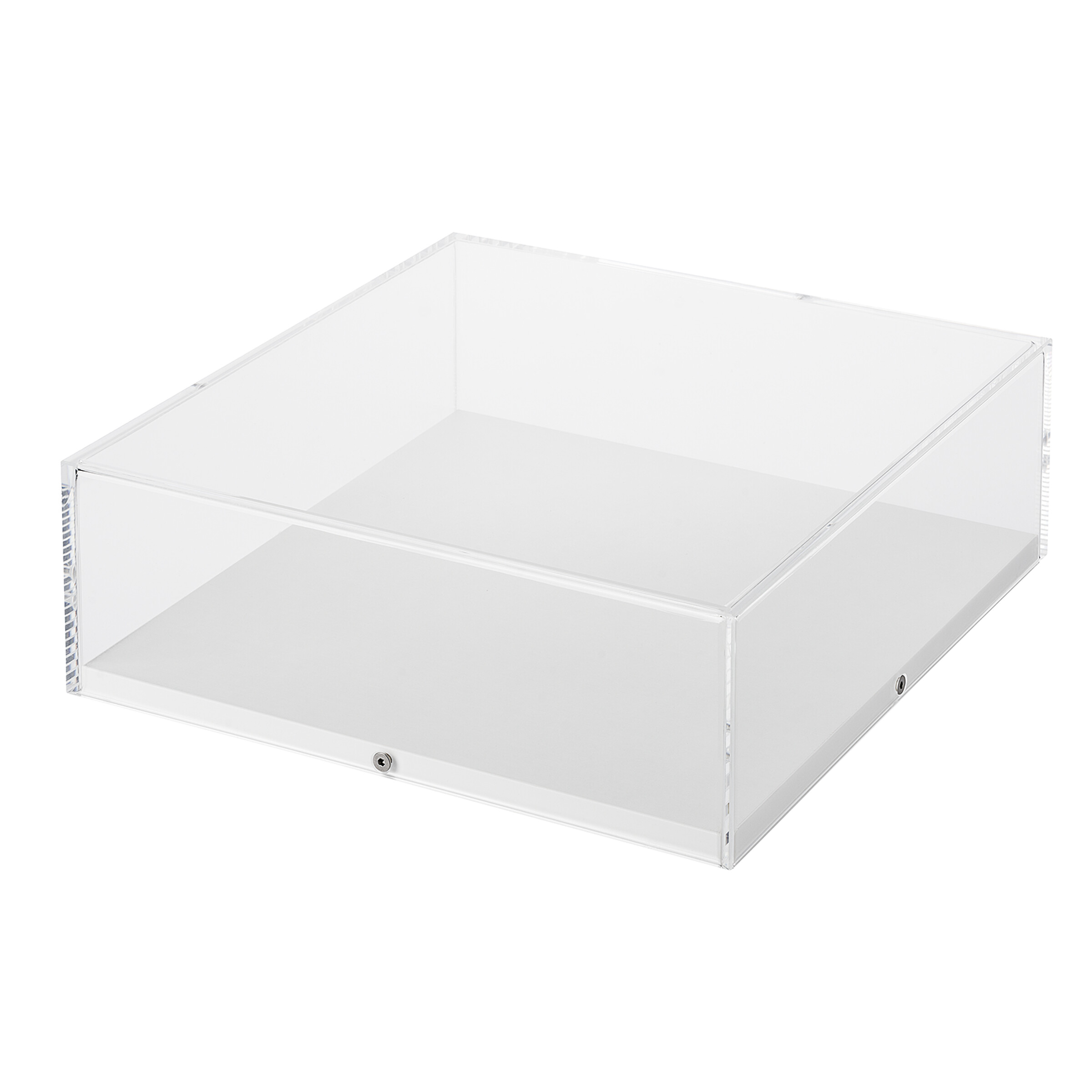 Der Objektrahmen mit Acrylglashaube erlaubt durch seine Rundum-Transparenz einen ungewöhnlichen Blick auf die Exponate. Sie erscheinen in einem anderen Licht und lassen sich nahezu von allen Seiten betrachten. Il Luce kann sowohl für die effektvolle Objekt-Rahmung als auch für die Produktpräsentation verwendet werden. Es gibt ihn in 6 Formaten, die kleineren Ausführungen bis 20 x 20 cm eigen sich für Objekte mit einer Tiefe von bis zu 3,5 cm (Gesamtrahmentiefe: 5 cm), alle übrigen für Objekte mit einer Tiefe von bis zu 8,5 cm (Gesamtrahmentiefe: 10 cm). Der Rahmen lässt sich nicht nur hängend befestigen, sondern in den Formaten 30 x 30 cm und 40 x 40 cm z. B. auch liegend als Galeriesockelhaube auf einen passenden Briolet Galeriesockel montieren. Die auf Stoß gearbeitete und sorgfältig verarbeitete Acrylglashaube wird auf eine weiße Grundplatte mit rückseitig eingelassener Aufhängung montiert (Schrauben und Werkzeug inkl.).