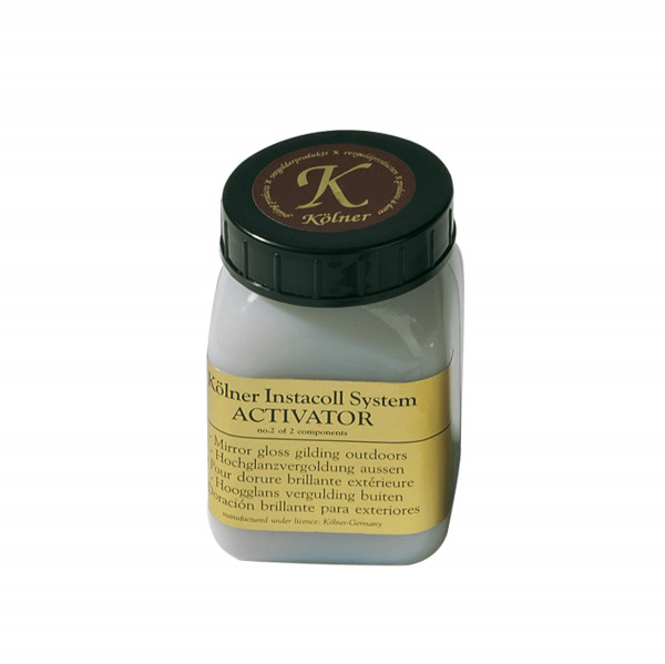 Eine dünne Schicht Aktivator mit einem fusselfreien Tuch (Kölner Instacoll Tissue oder mit einem Pinsel) auf die getrocknete Basisschicht auftragen und wenige Minuten trocknen lassen: die behandelte Fläche wird erneut für die Metallhaftung aktiviert, die Verarbeitungszeit verlängert sich um ca. 1 Stunde. Eine Aktivierung kann auch nach Jahren vorgenommen oder wiederholt werden.