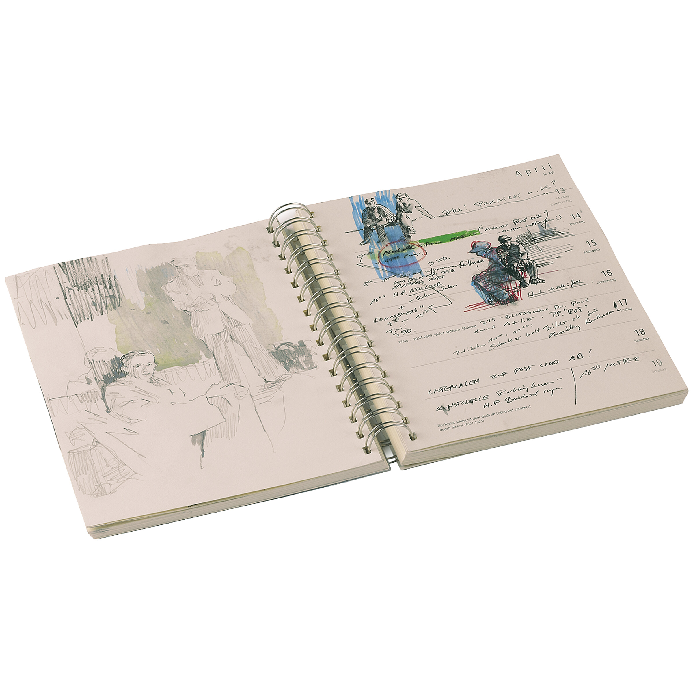 Ein Kalender mit viel Freiraum für Ideen, Impressionen, Entwürfe, Skizzen usw. Der Kalender wird somit zu einem individuellen und unverwechselbaren Medium des Hier und Jetzt – ganz im Sinne der Philosophie des „carpe diem“...