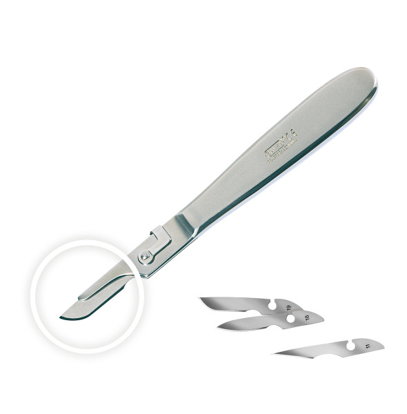 Klingen aus Kohlenstoffstahl für Bayha Skalpellgriffe. Alle Klingen passen auf alle Bayha Skalpellgriffe. 12 Stück.