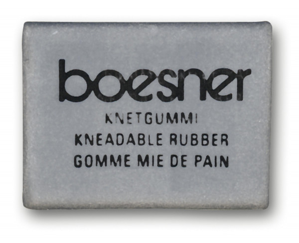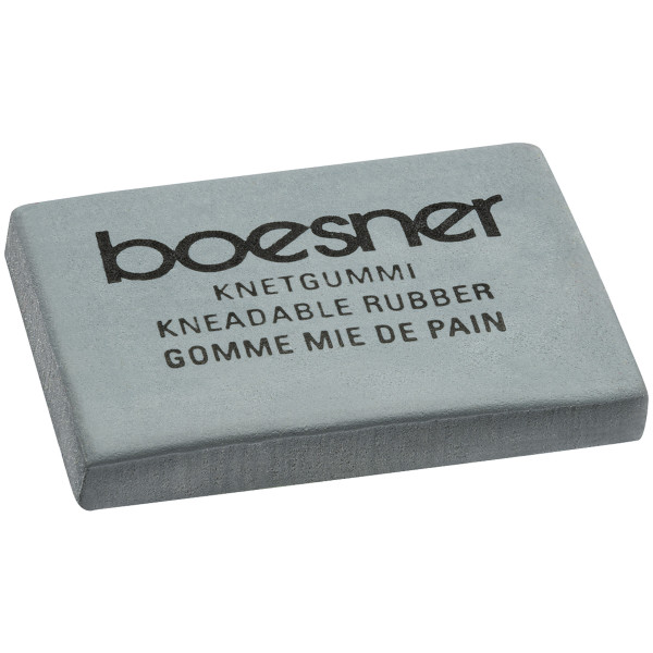 Naturgummiradierer für Kohle und Pastellkreiden, weich, grau, kann beliebig geteilt und in die gewünschte Form und Stärke geknetet werden. Größe: ca. 37 x 42 x 11 mm.