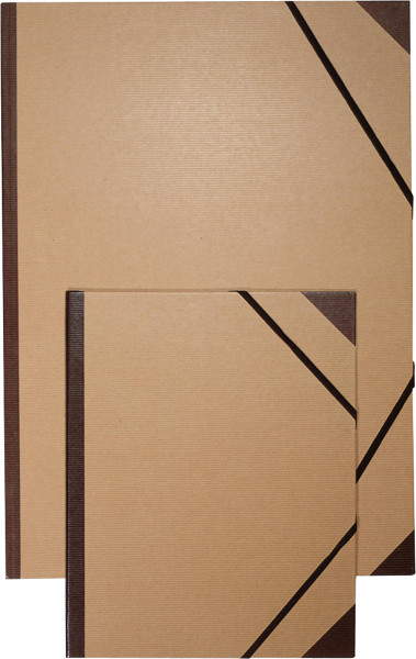 Stabile, säurefreie Mappe für Papiere, Arbeiten usw. Deckflächen braun, verstärkte Ecken in Schwarz, Füllhöhe 2,5 cm. Zwei schwarze Elastikbänder halten die Mappe geschlossen und sichern den Inhalt. Eine Mappe mit besonders gutem Preis-Leistungs-Verhältnis.