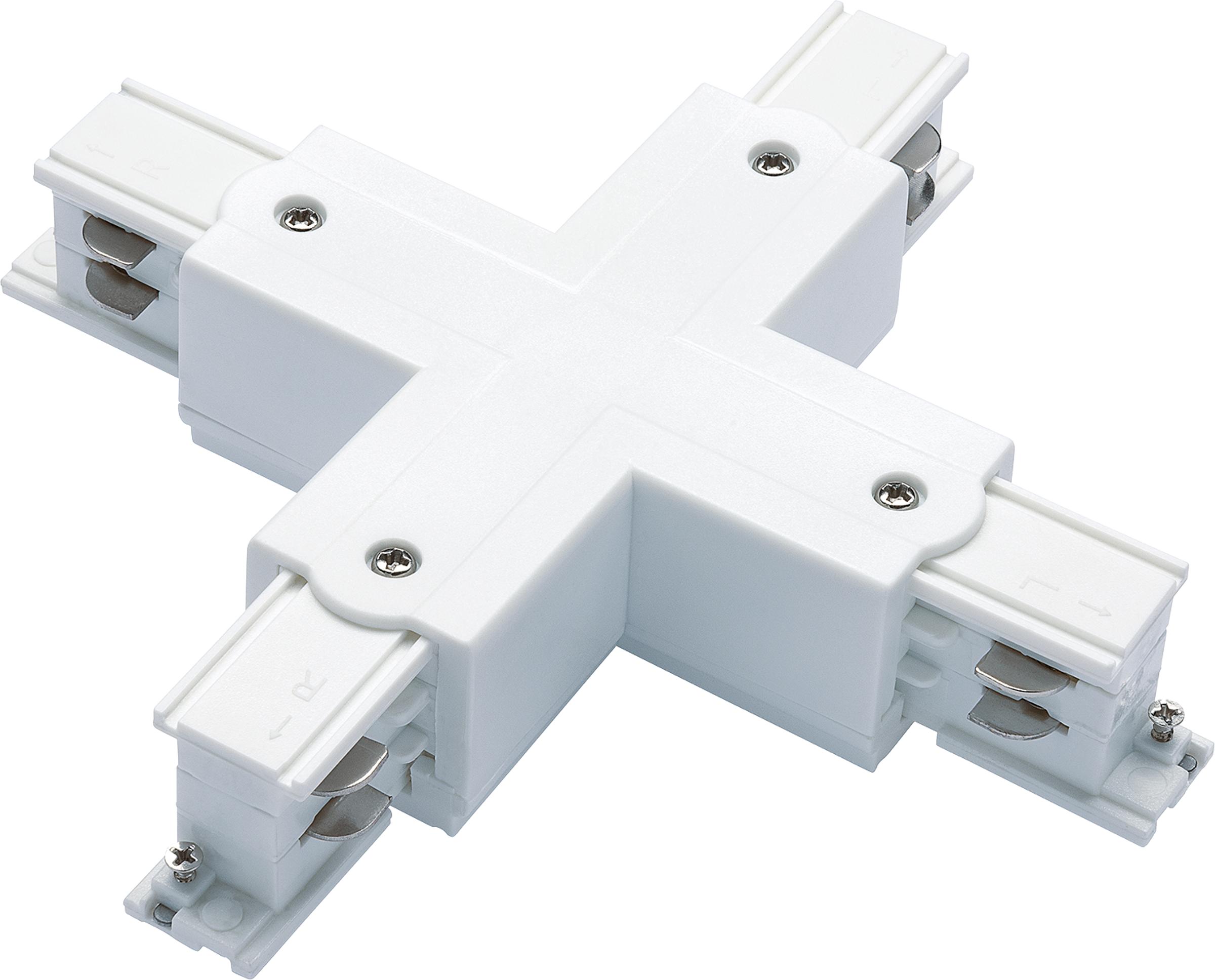 An den Kreuzverbinder können vier Stromschienen angeschlossen werden, Einspeisung möglich.