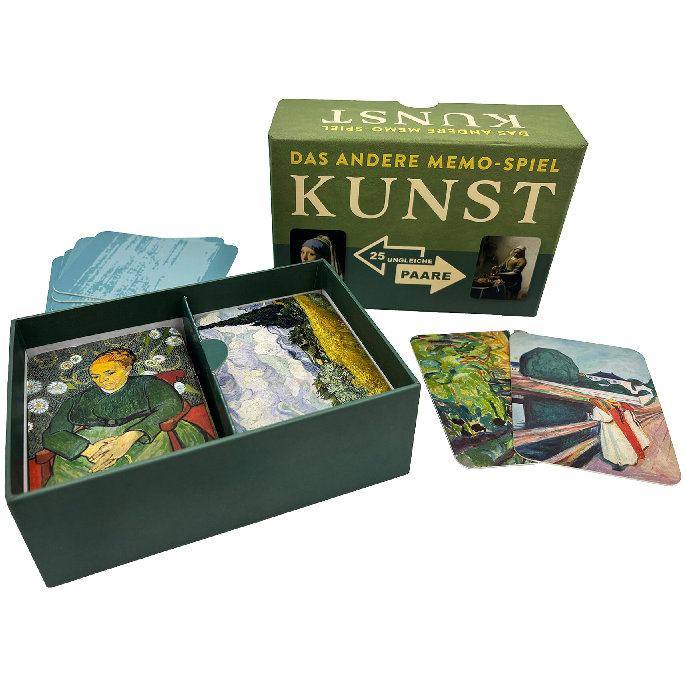 In diesem Memo-Spiel sollen die Spielenden je zwei unterschiedliche Werke eines Künstlers finden und zusammenbringen. Damit schulen sie ihr Auge und ihr Kunstverständnis. Gleichzeitig weckt das Spiel die Neugier auf die sehr unterschiedlichen Künstler und die Besonderheiten ihrer jeweiligen Arbeitsweise.