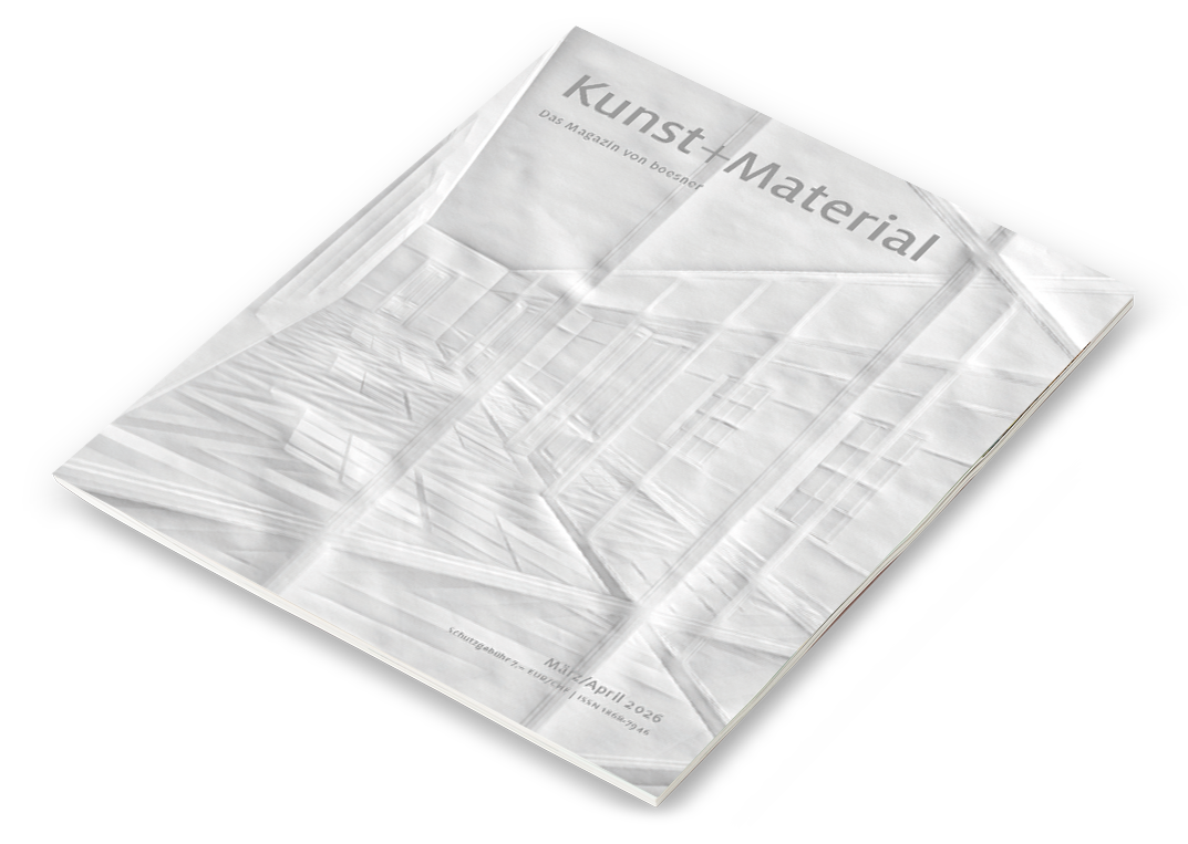 Kunst+Material ist die Kunstzeitschrift von boesner, die zweimonatlich mit einer Auflage von 30.000 Exemplaren erscheint. Das Magazin bietet ausführliche Porträts, wichtige Termine, Berichte zu aktuellen Kunstausstellungen, spannende Themen, Informationen zur Kunstszene und zum Berufsalltag von Künstler*innen. Hintergrundinformationen zur Verwendung von Material in der Kunst sowie Buchbesprechungen runden den Themenkatalog ab.