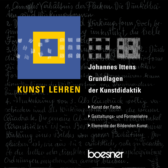 Mit „Elemente der Bildenden Kunst. Studienausgabe des Tagebuches“ macht der boesner-Band Aufzeichnungen von Johannes Itten wieder zugänglich, die er ursprünglich 1930 im Eigenverlag seiner Berliner Schule veröffentlicht hatte. Aufgrund der niedrigen und exklusiven Erstauflage waren sie lange Zeit nur einer sehr begrenzten Leserschaft zugänglich, und auch die Studienausgabe von 1980 (2. Auflage 2002) wird mittlerweile seit vielen Jahren nicht mehr regulär auf dem Buchmarkt angeboten. Itten selbst untertitelte das Dokument als „Beiträge zu einem Kontrapunkt der bildenden Kunst“. Es zeugt in einzelnen handgeschriebenen und -gezeichneten Blättern von seiner täglichen Auseinandersetzung um die Prinzipien der Kunst. In dem gegenüber dem Original leicht gekürzten und verkleinerten Text (ursprünglich 39 x 52 cm) der Sonderausgabe werden die handschriftlichen Einträge zum besseren Verständnis einer gedruckten Umschrift gegenübergestellt.